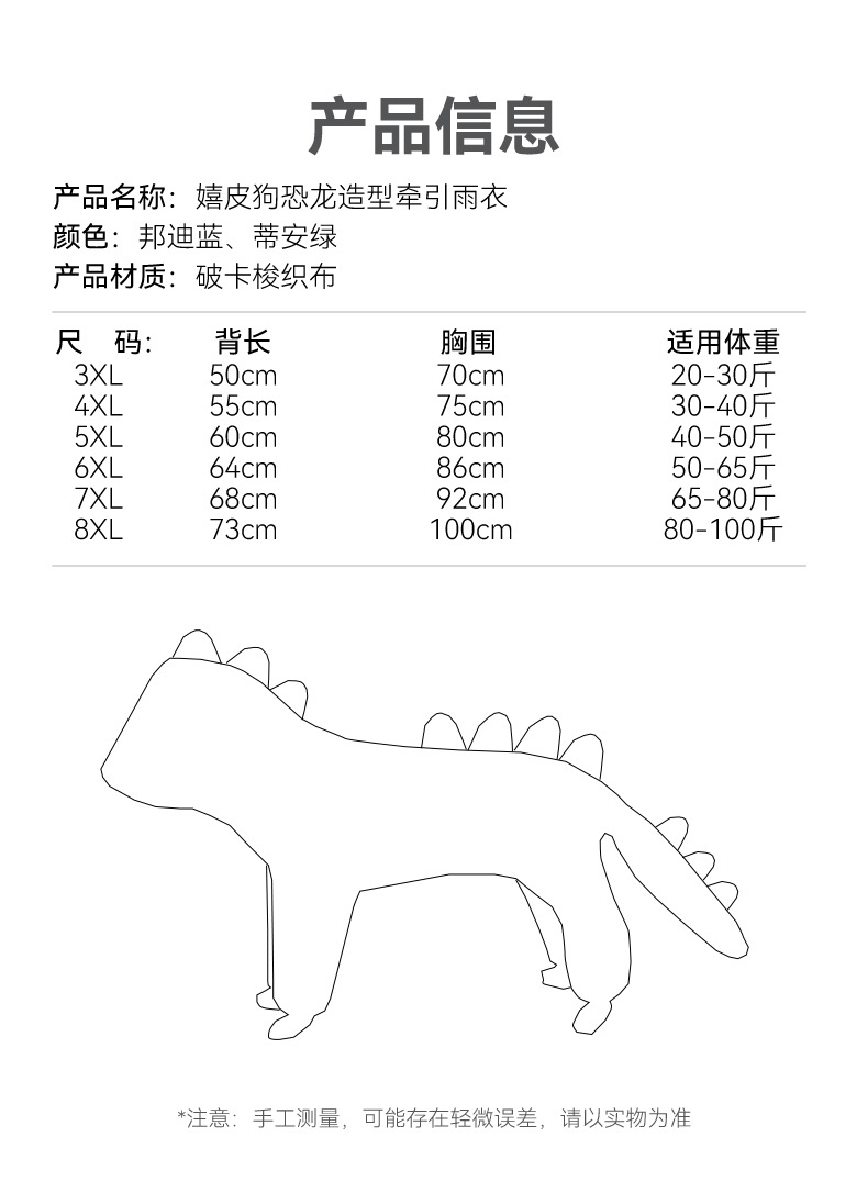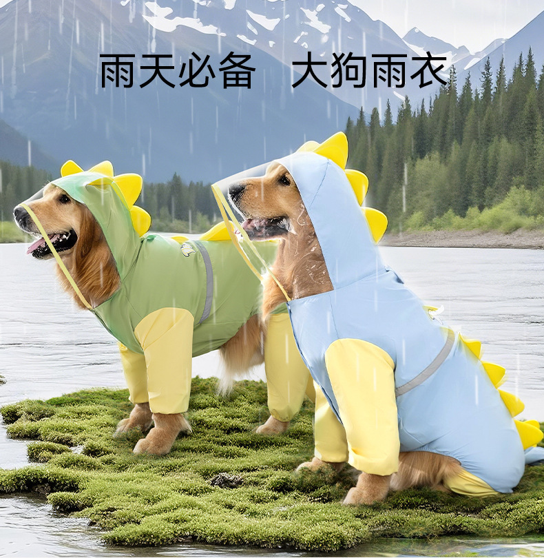 개 중형 및 대형 개 골든 리트리버 3 차원 공룡 비옷 큰 개 4 개 다리 풀백 꼬리 애완 동물 개 방수 비옷스토어 가기