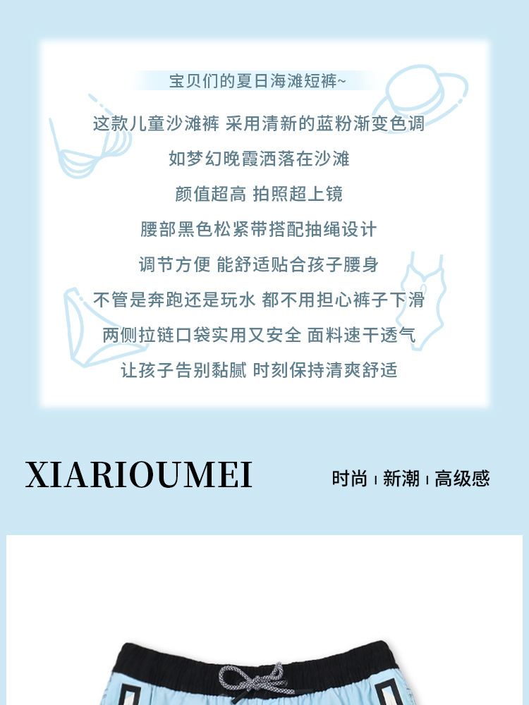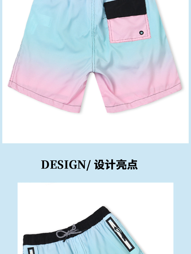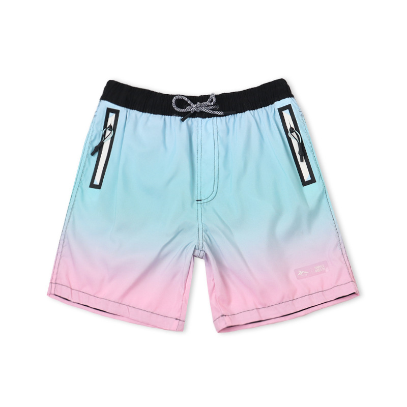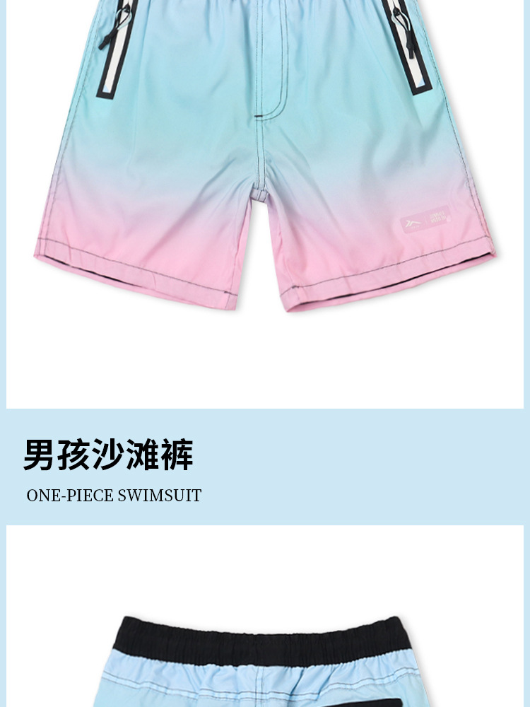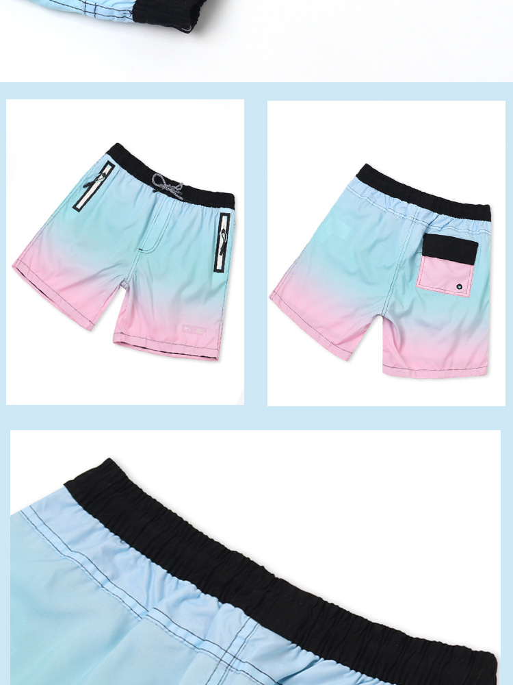새로운 어린이 해변 바지 상쾌한 그라데이션 색상 소년 해변 서핑 반바지 태양 보호 속건 소년 해변 수영복