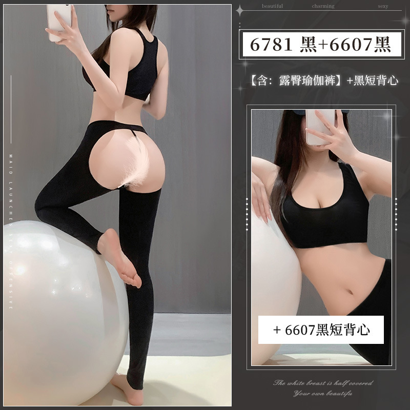 • ******블랙 [완전 노출 엉덩이 요가 팬츠] + 블랙 [짧은 조끼] ******