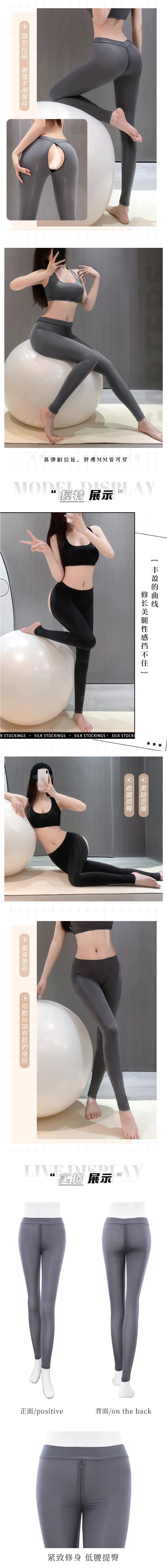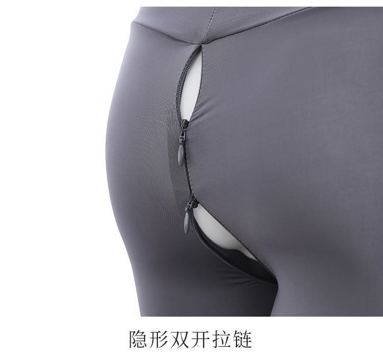 • ******그레이【지퍼 더블 가랑이 요가 세트】+7332 광택 있는 가랑이 없는 블랙 실크******