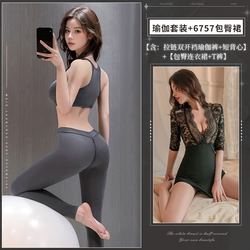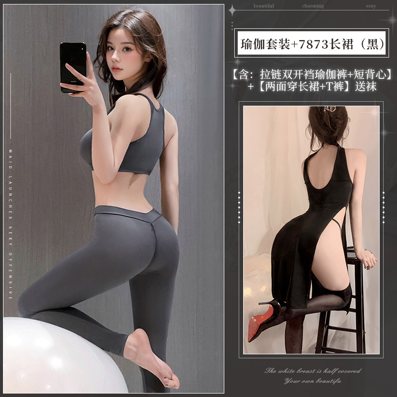 속옷 섹시한 탈착 불가능한 열정 유니폼 유혹 2024 새로운 오픈 가랑이 요가 바지 외출 세트 도매스토어 가기