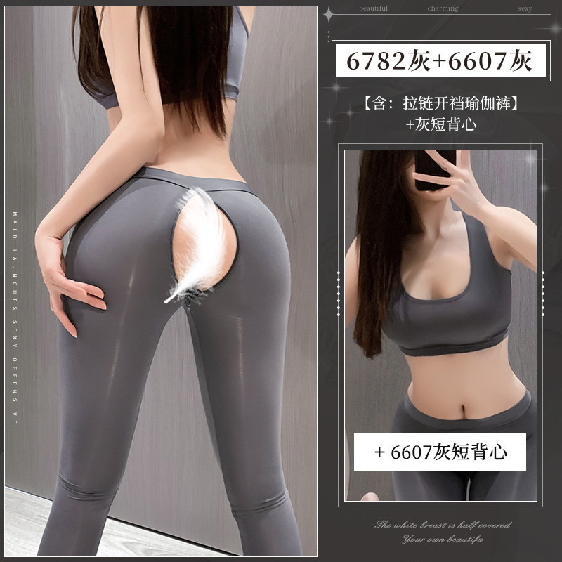 • ******그레이【지퍼 더블 가랑이 요가 세트】+7185 진주 속옷(가랑이 오픈)******