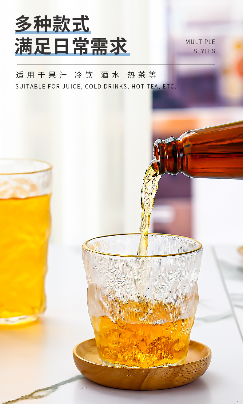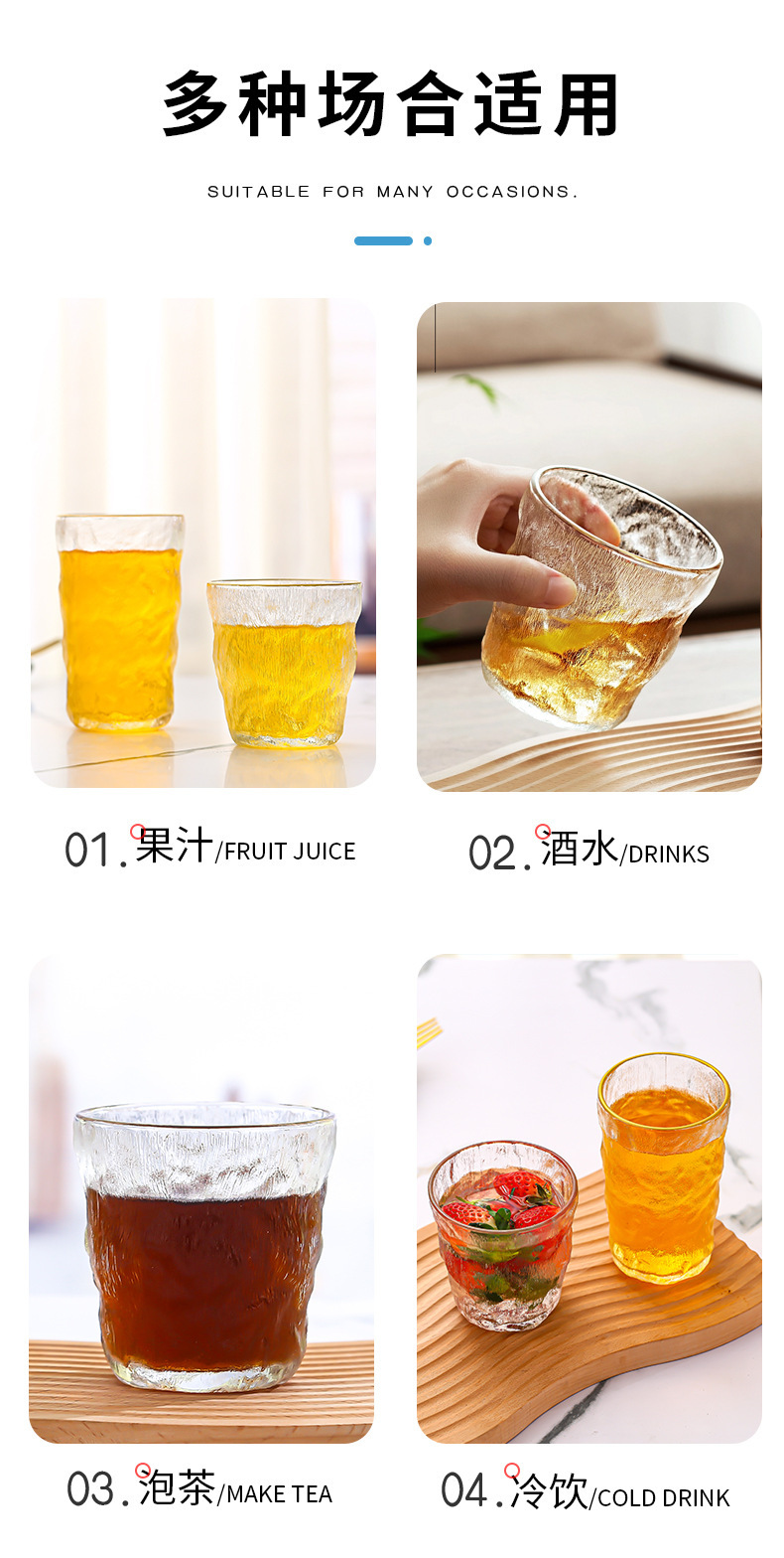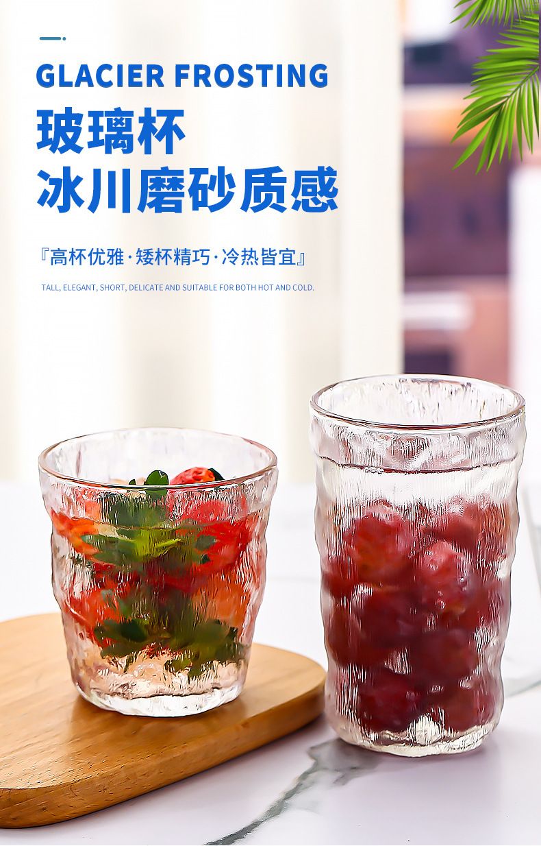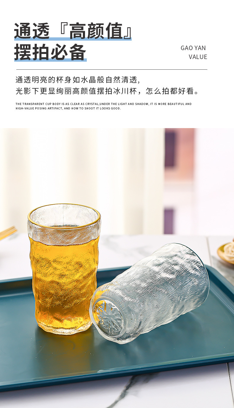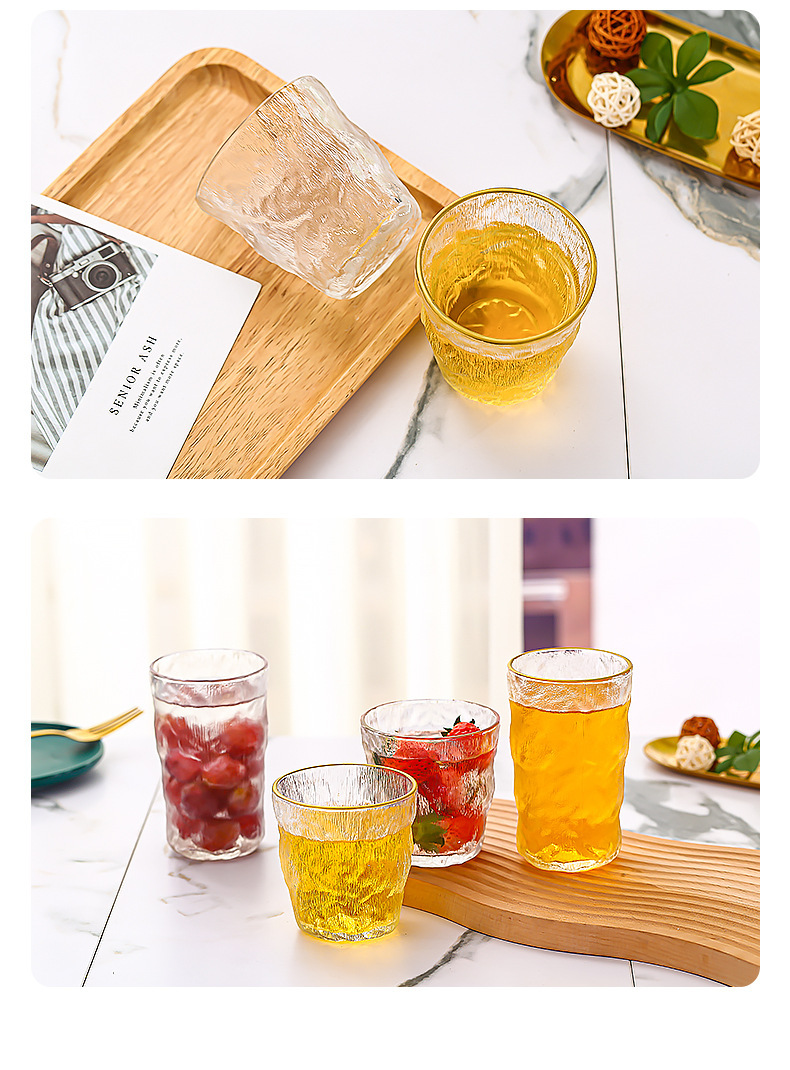 빙하 컵 ns 스타일 해머 패턴 컵 일본식 투명 물 컵 학생 유리 도매 고가치 선물 젖빛 주스 컵