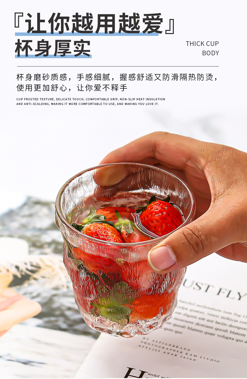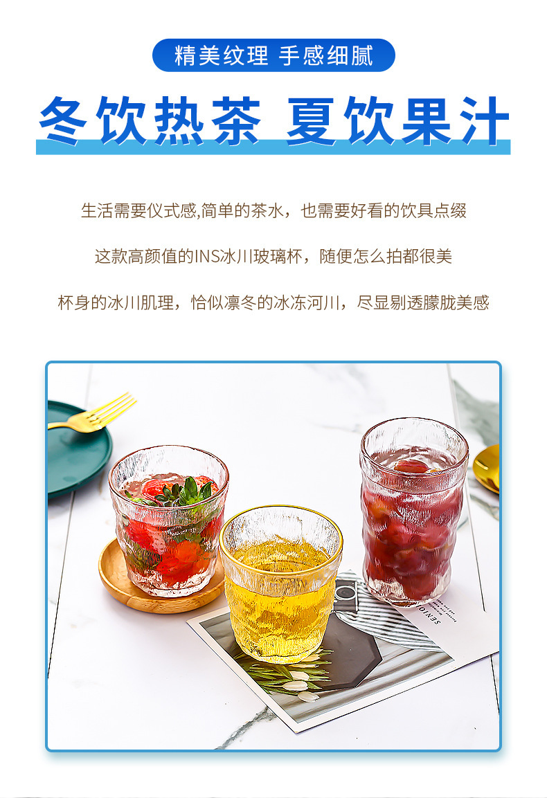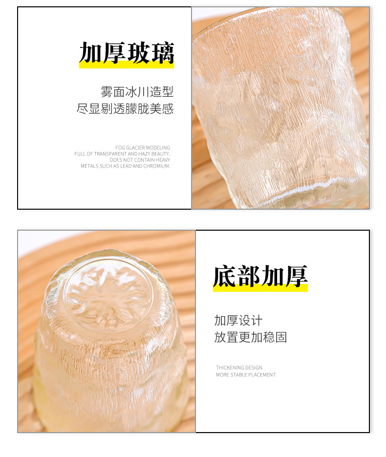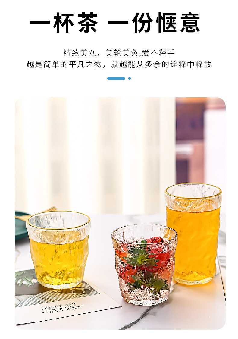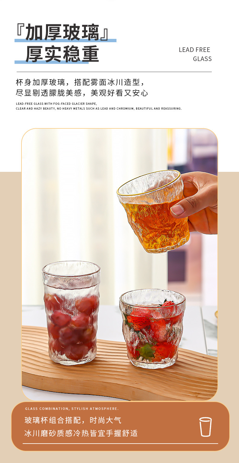 빙하 컵 ns 스타일 해머 패턴 컵 일본식 투명 물 컵 학생 유리 도매 고가치 선물 젖빛 주스 컵