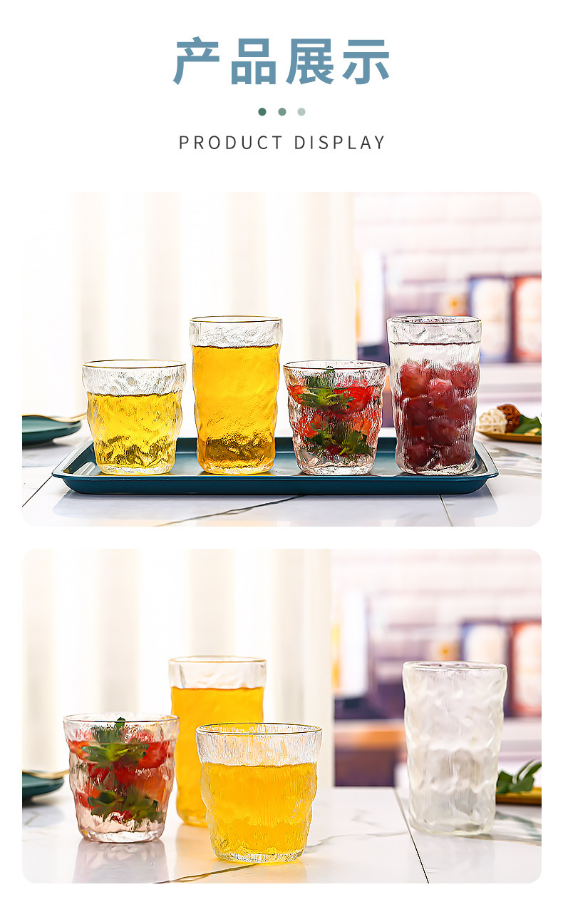 빙하 컵 ns 스타일 해머 패턴 컵 일본식 투명 물 컵 학생 유리 도매 고가치 선물 젖빛 주스 컵스토어 가기