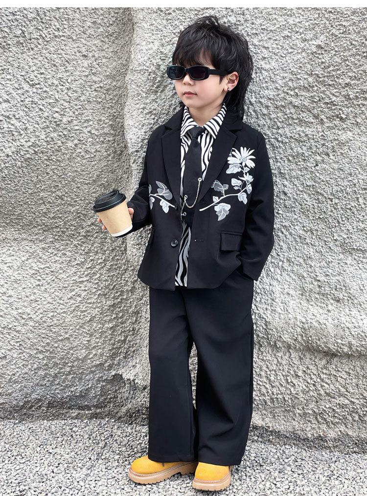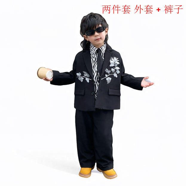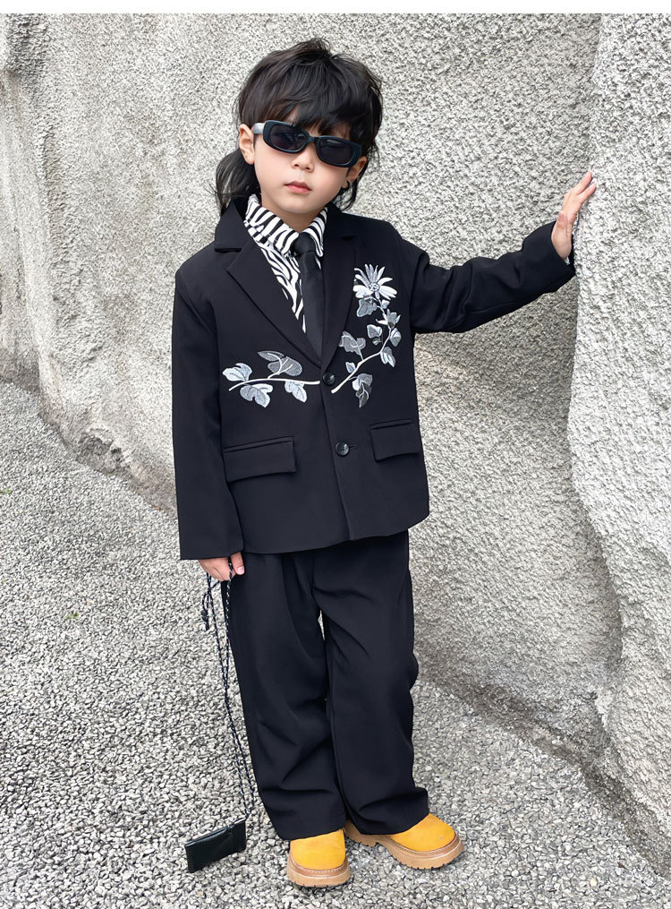 어린이 요정 자수 작은 정장 재킷 바지 느슨한 정장 드레스 잘 생긴 정장 소년 영국 공연 의상