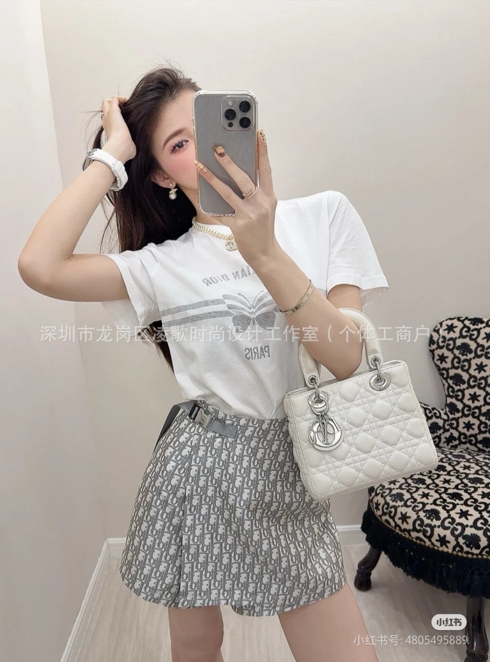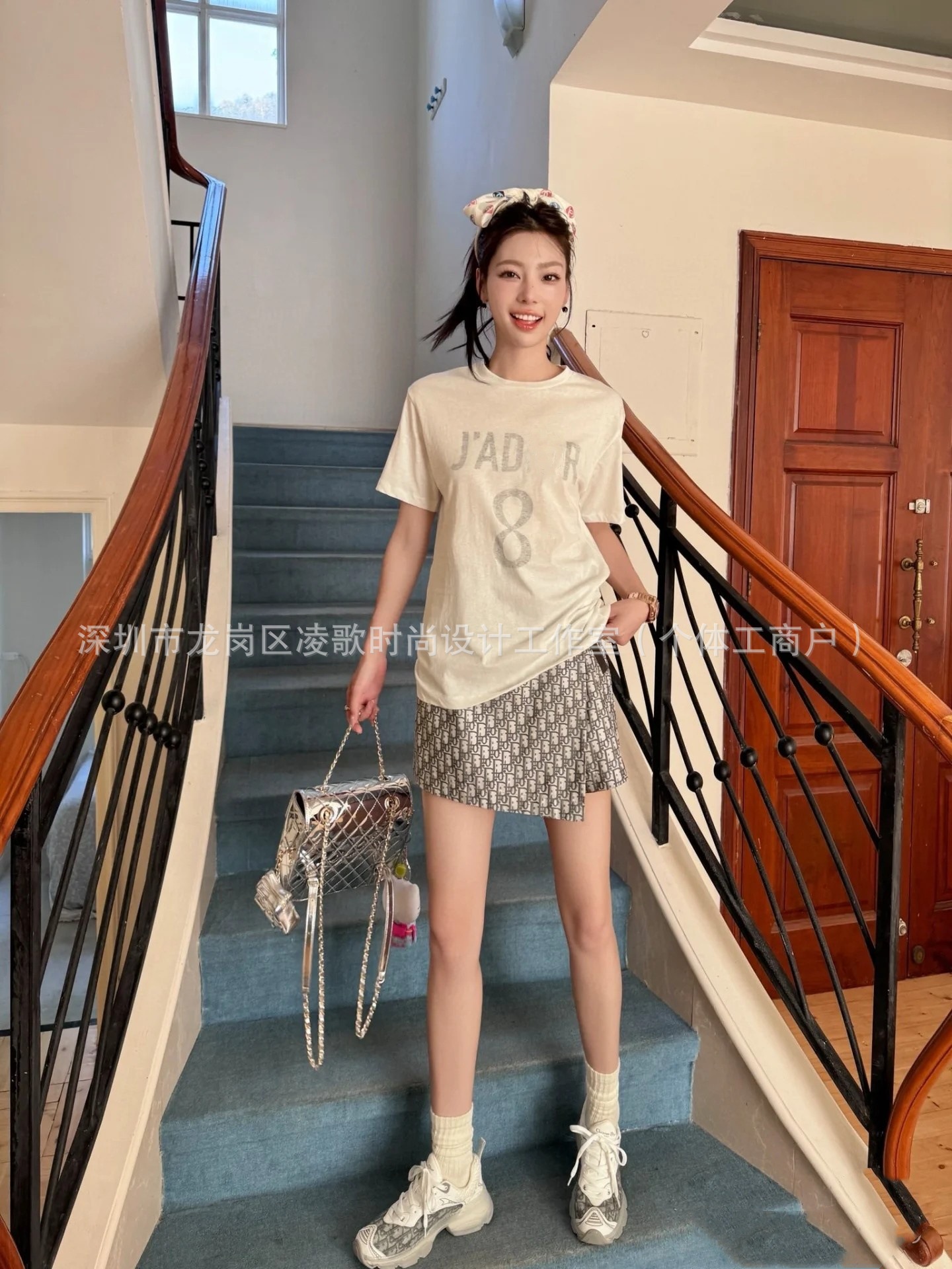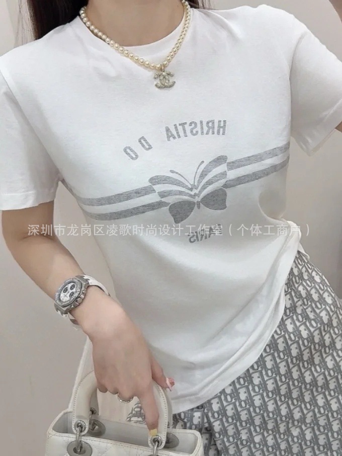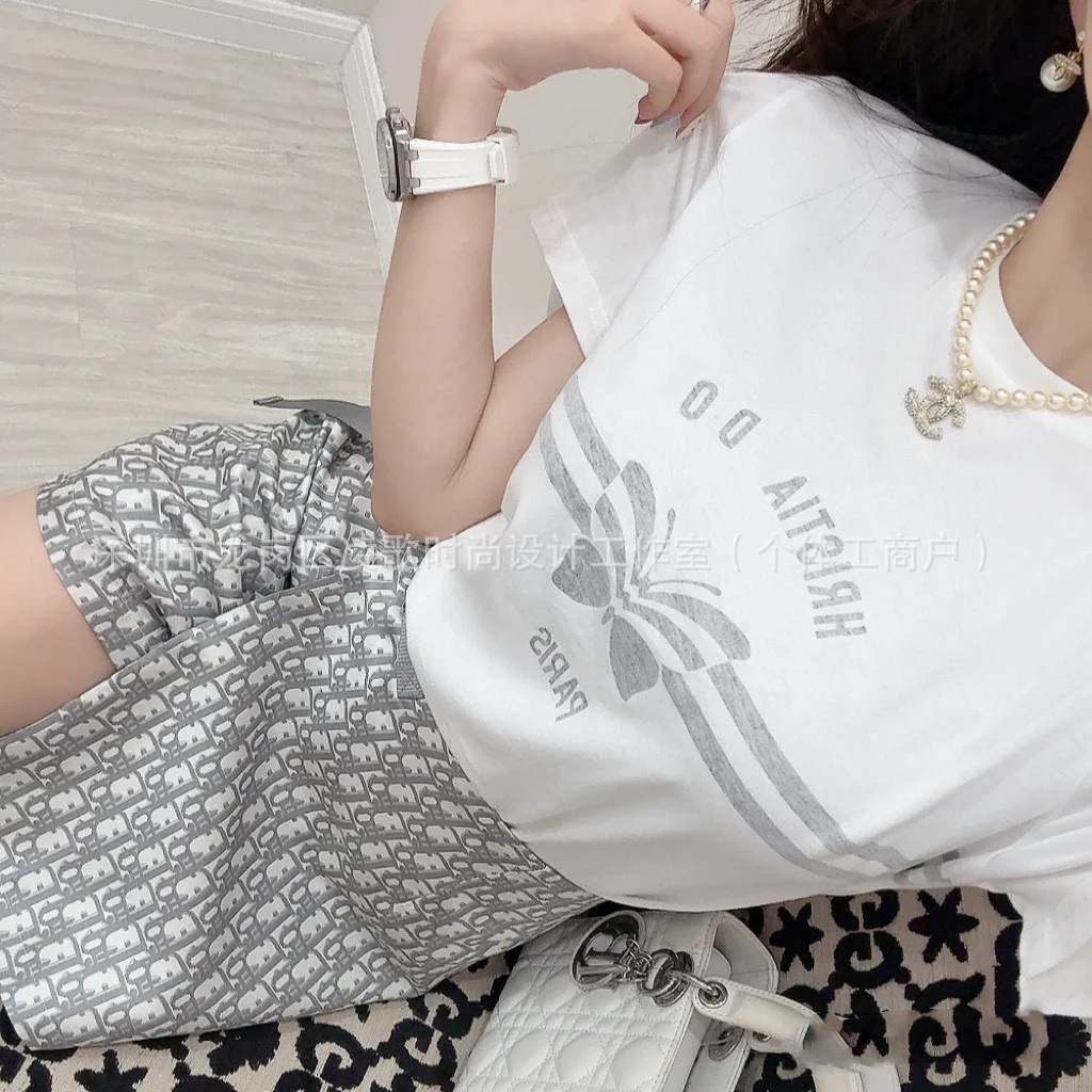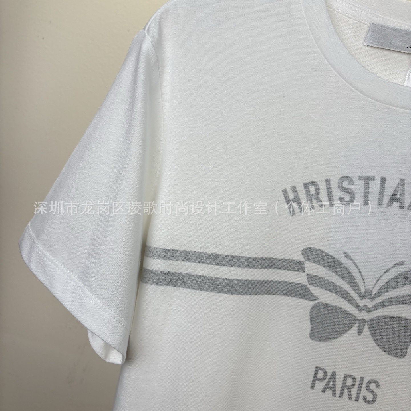 LENGE 난유 하이엔드 버전~26 봄 여름 신상품 8자리 뒷면 프린트 라운드넥 반팔 티셔츠 여성용 이너웨어스토어 가기