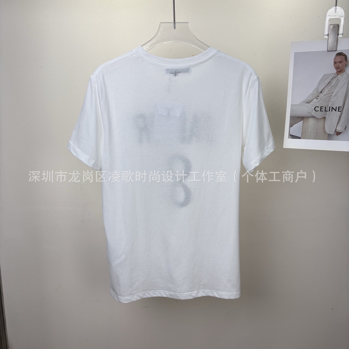 LENGE 난유 하이엔드 버전~26 봄 여름 신상품 8자리 뒷면 프린트 라운드넥 반팔 티셔츠 여성용 이너웨어