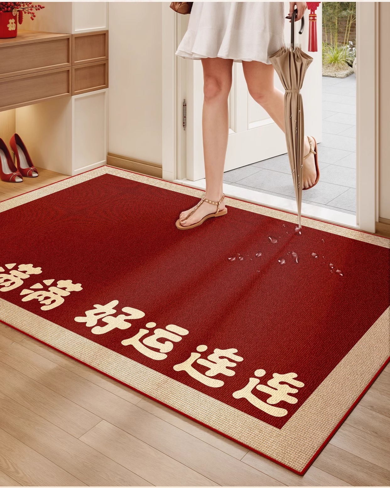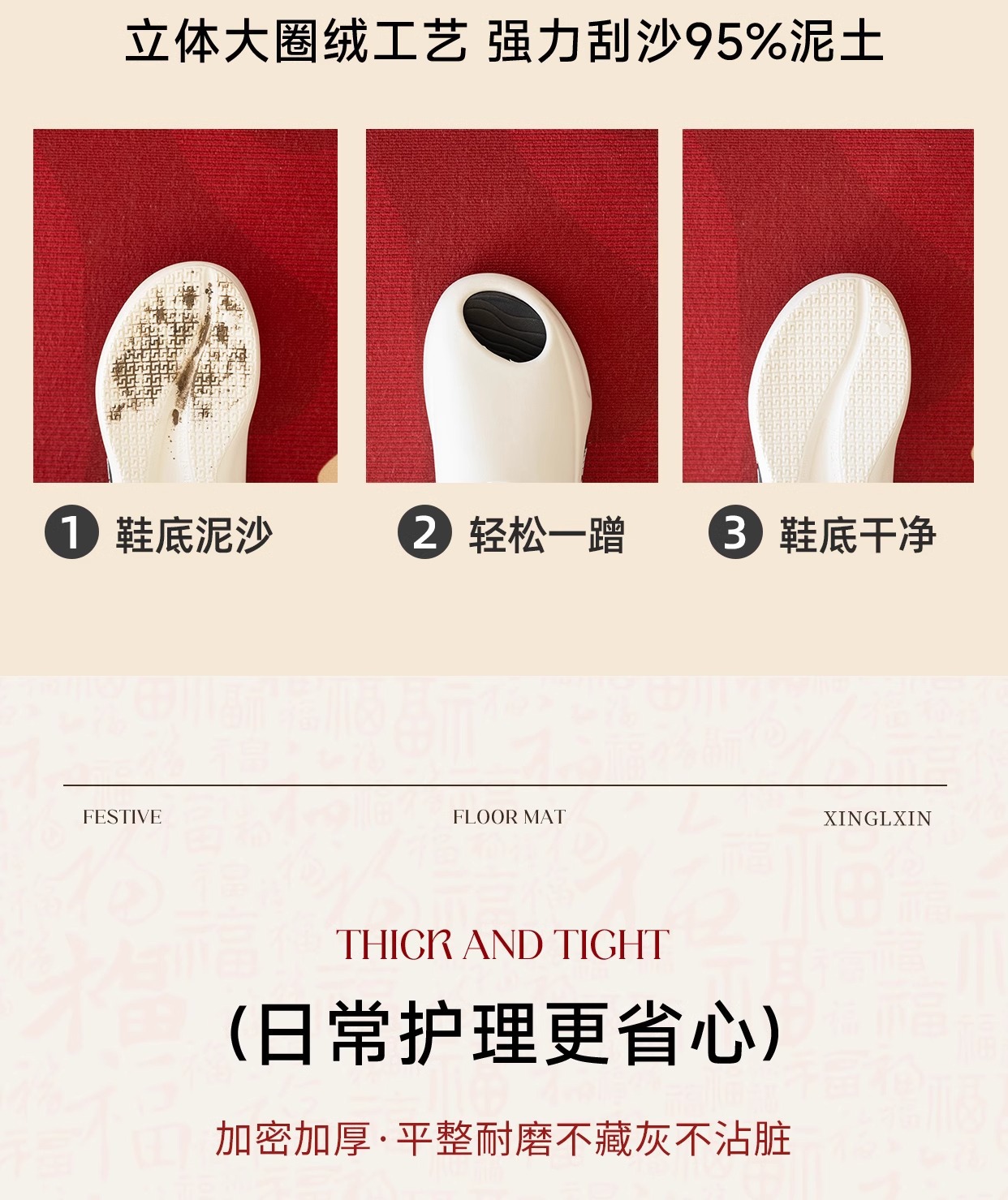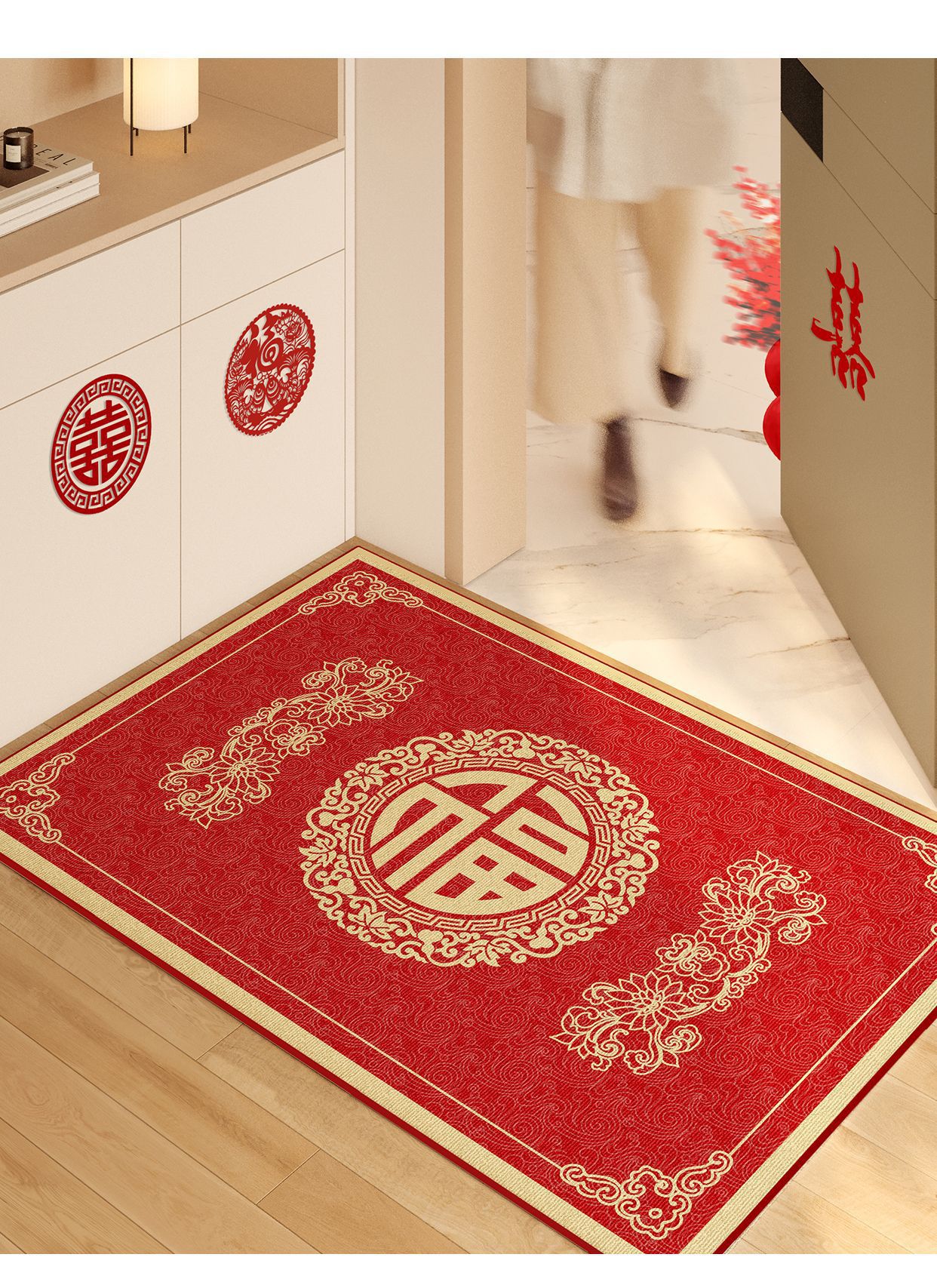 맞춤형 입구 문 바닥 매트, 빨간색 새해 문 매트, 입구 문 얼룩 방지 미끄럼 방지 카펫 제조 업체 도매스토어 가기