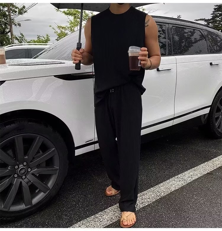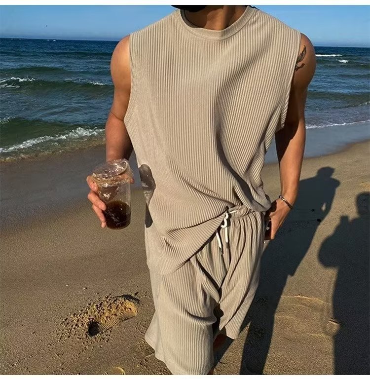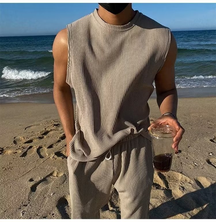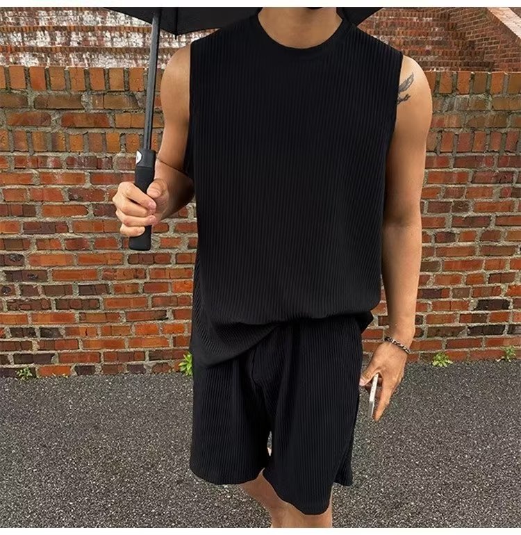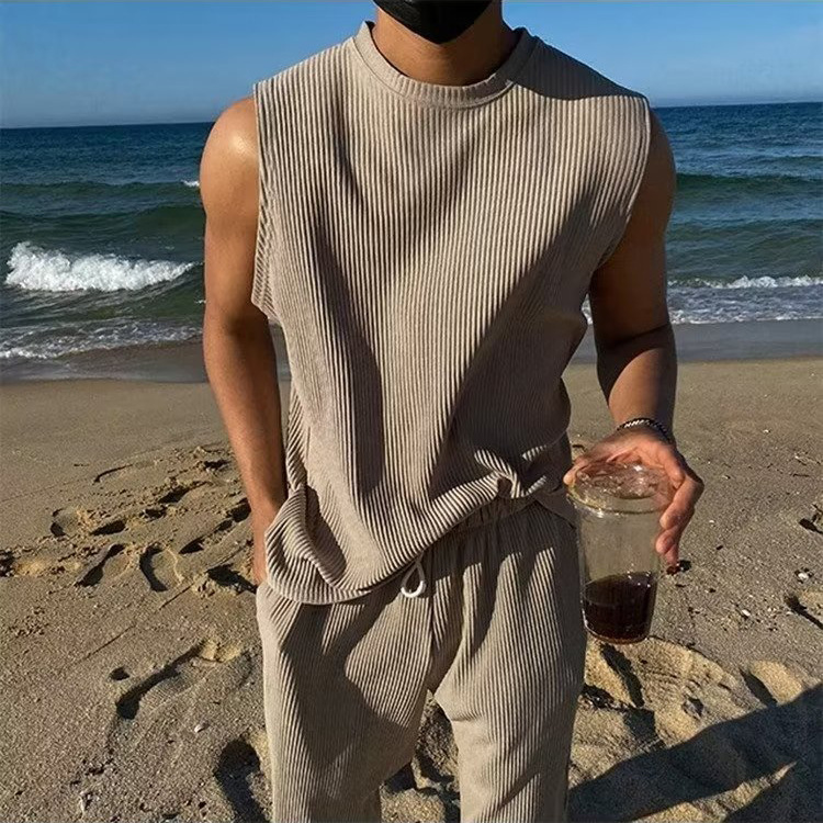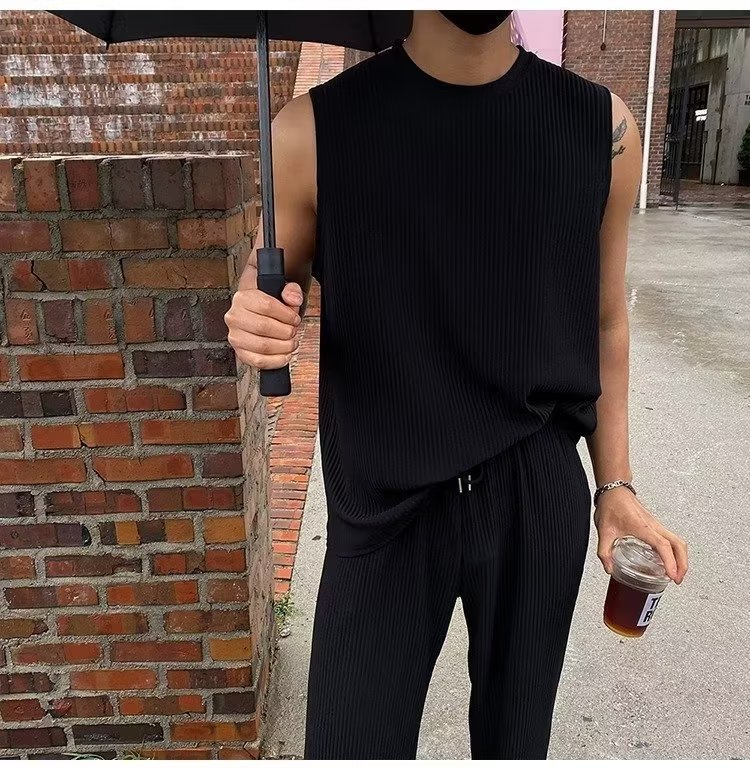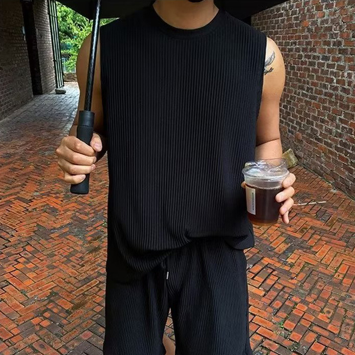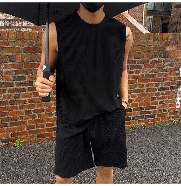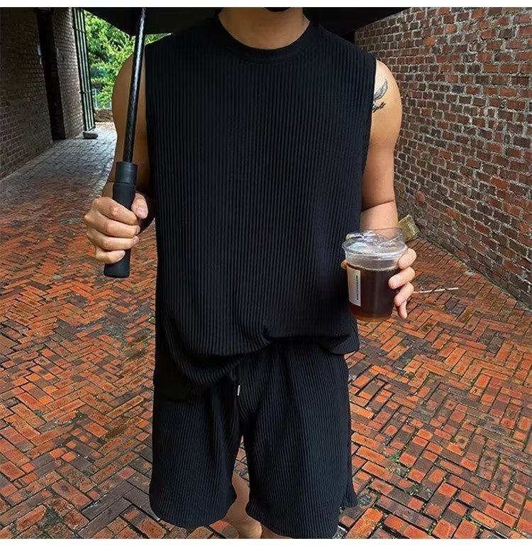 여름 새로운 스포츠 양복 조끼 남자 세트 민소매 티셔츠 피트니스 빠른 건조 농구 조수 대외 무역 국경 도매