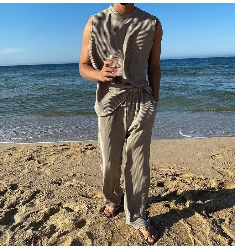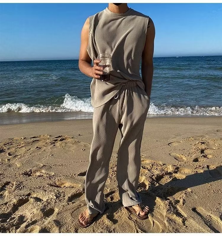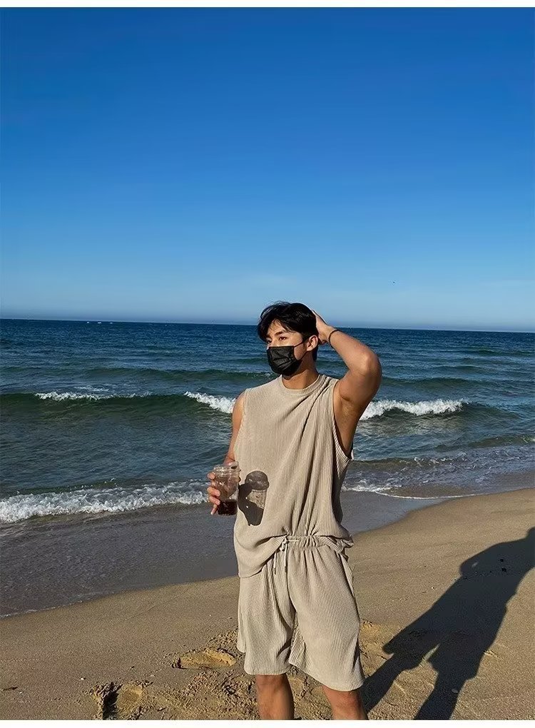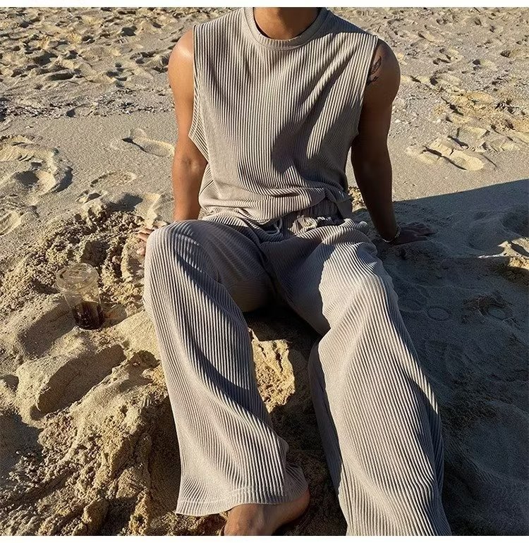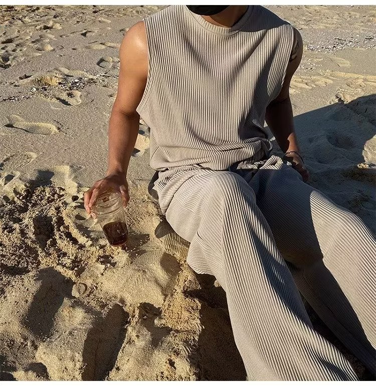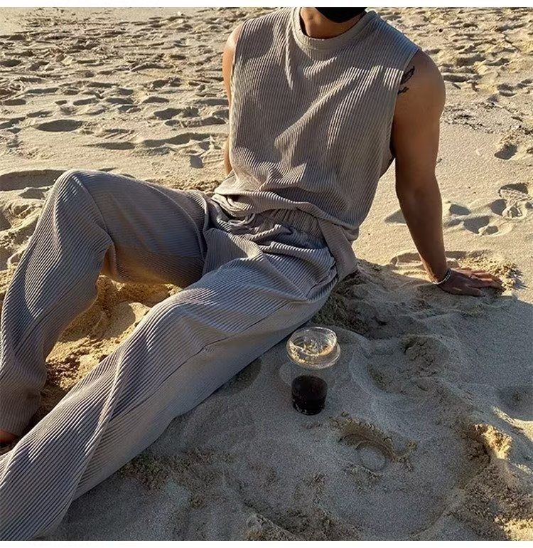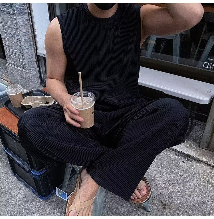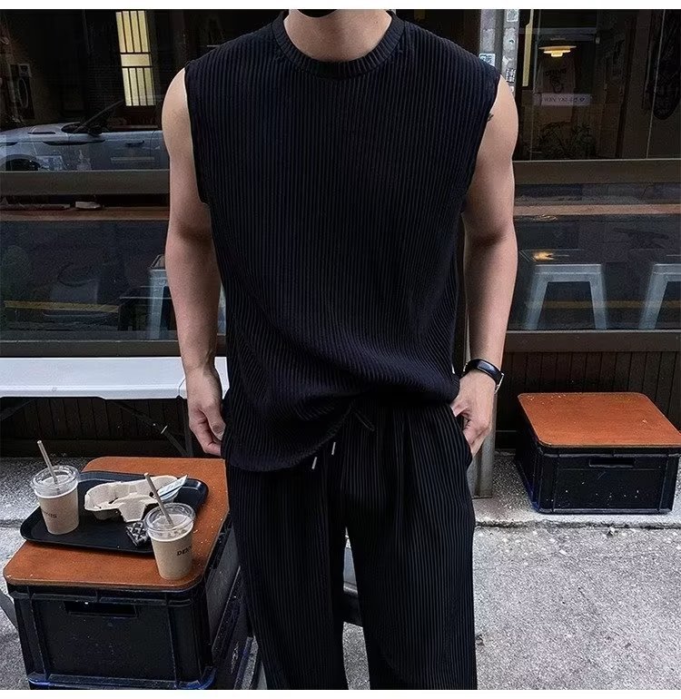 여름 새로운 스포츠 양복 조끼 남자 세트 민소매 티셔츠 피트니스 빠른 건조 농구 조수 대외 무역 국경 도매