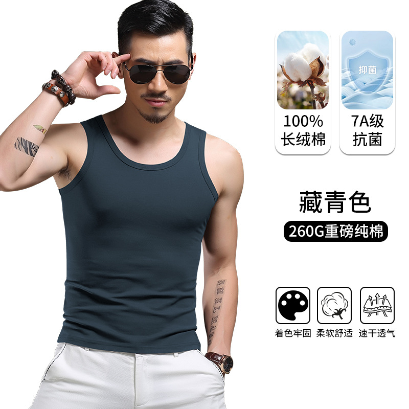 여름 신장 긴 스테이플 코튼 남자 조끼 2025 여름 코튼 허들 스포츠 피트니스 스웨트 셔츠 면 조끼