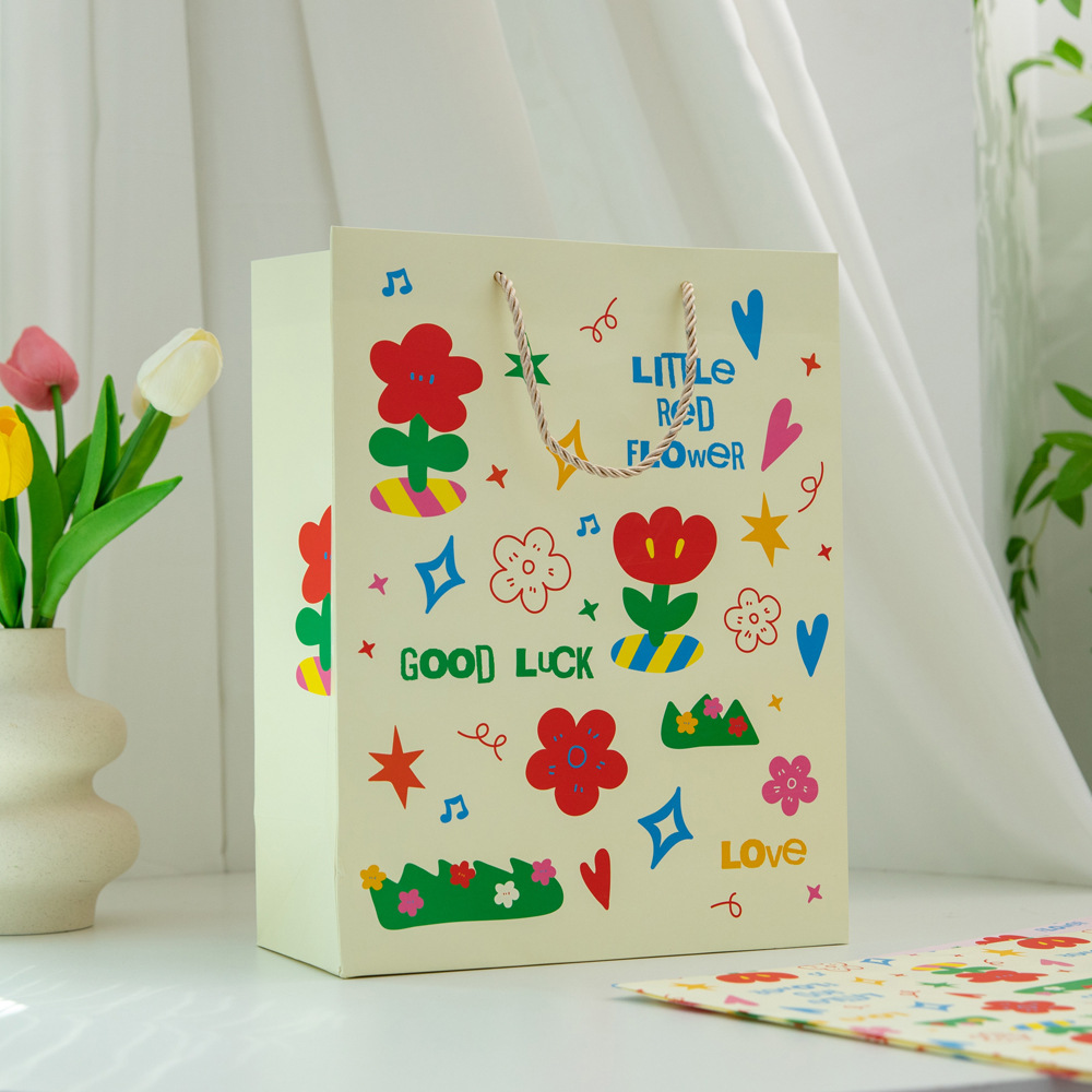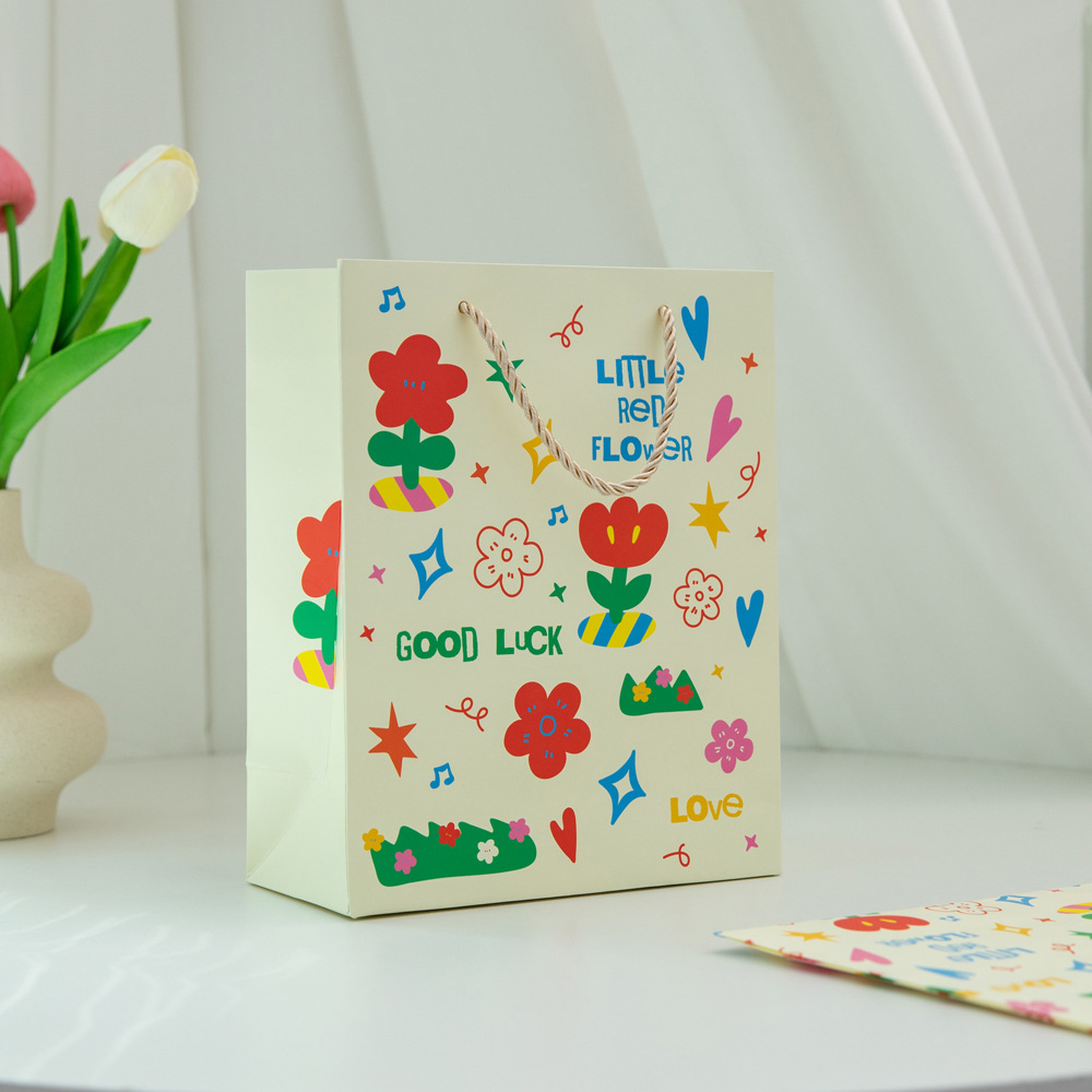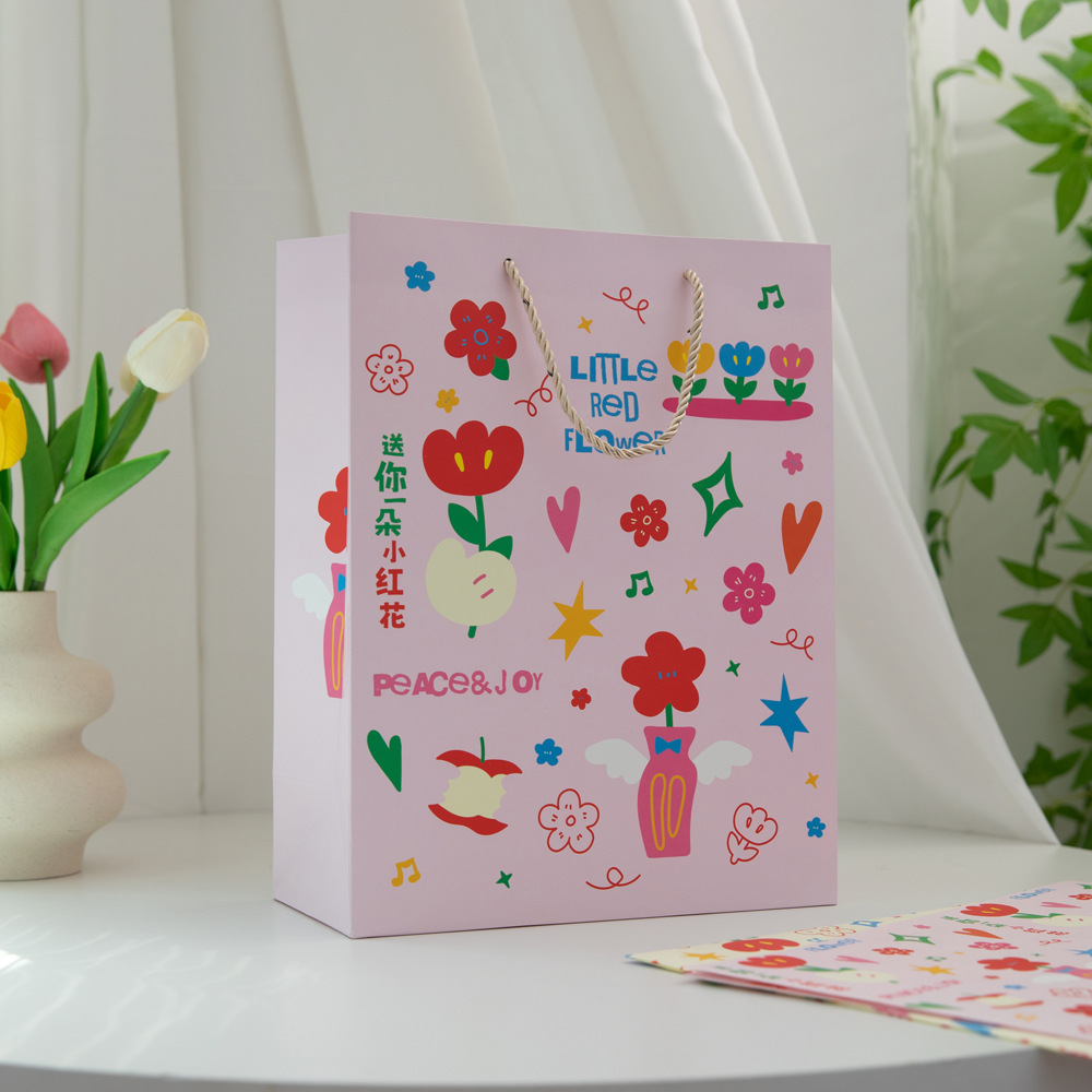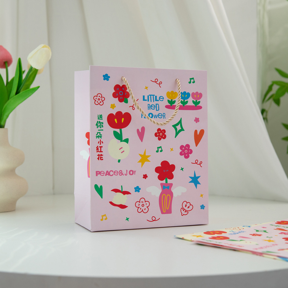 나는 당신에게 작은 붉은 꽃 핸드백을 보내는 선물 가방을 기억한다. 매일 선물 핸드백 두꺼운 흰색 판지 가방스토어 가기
