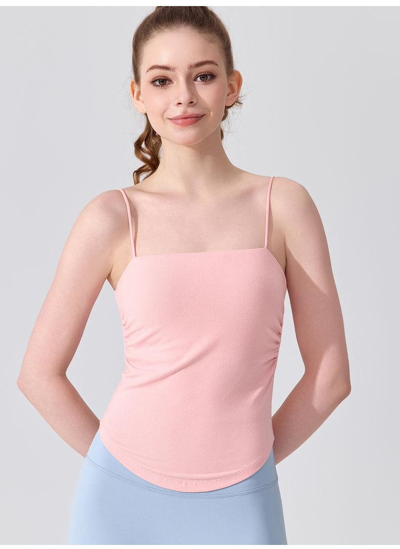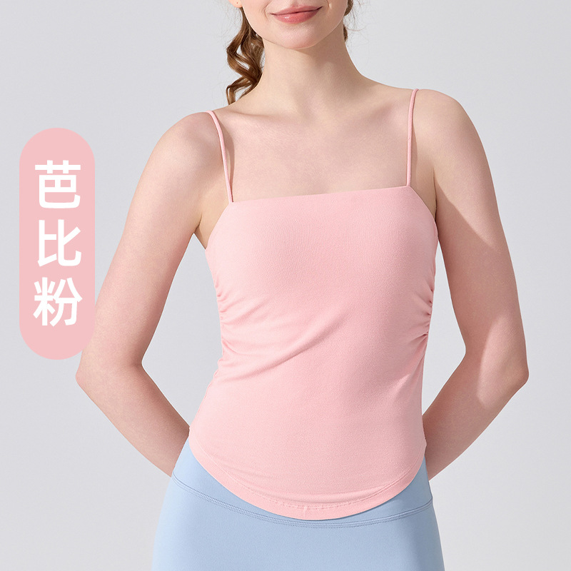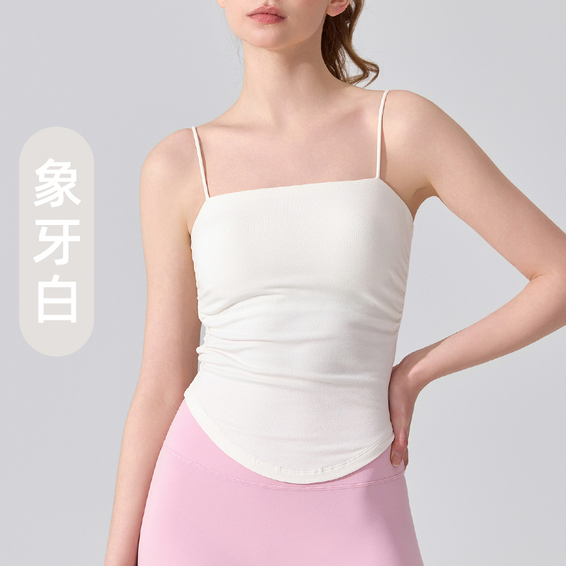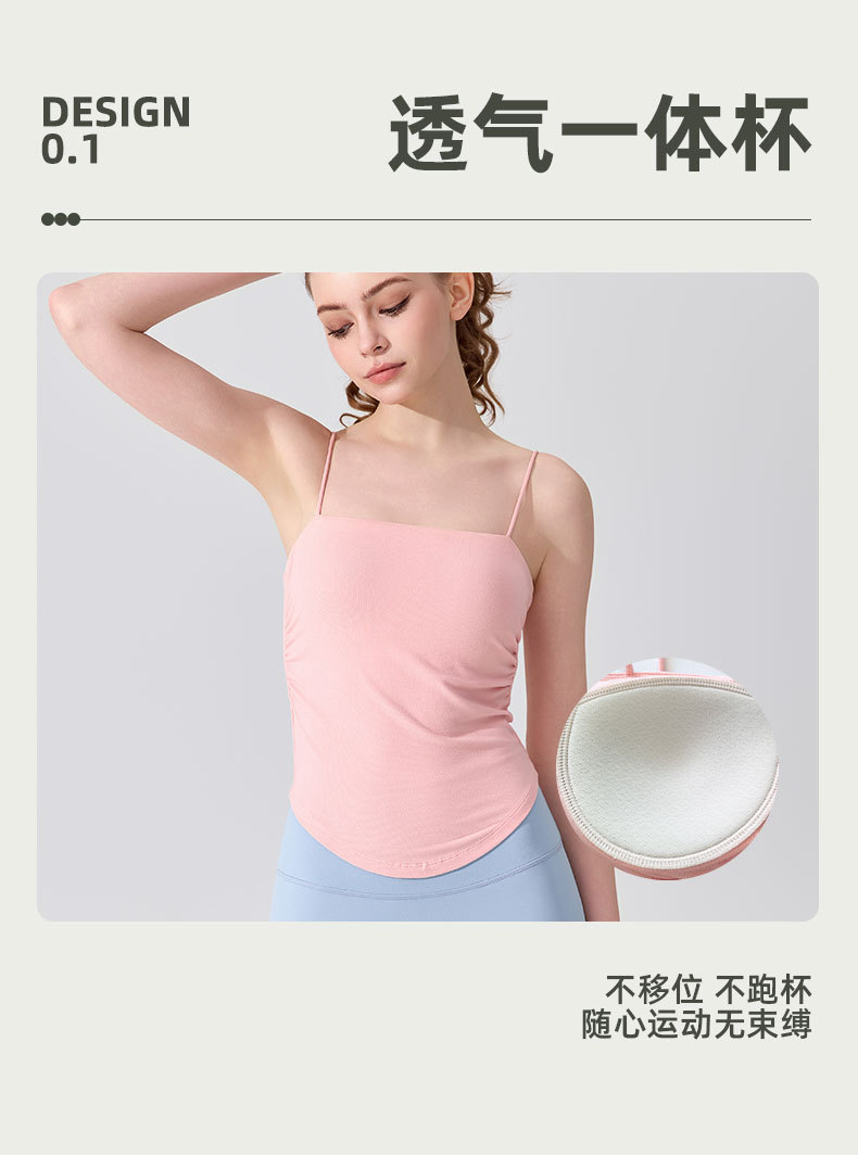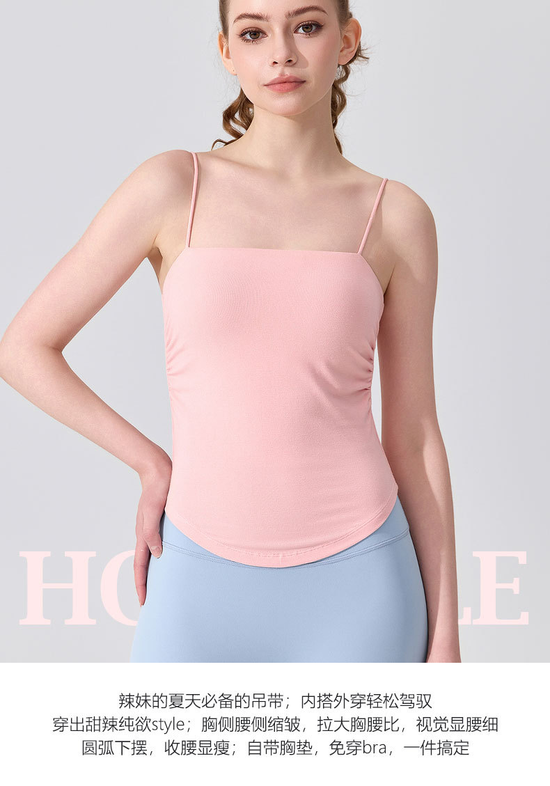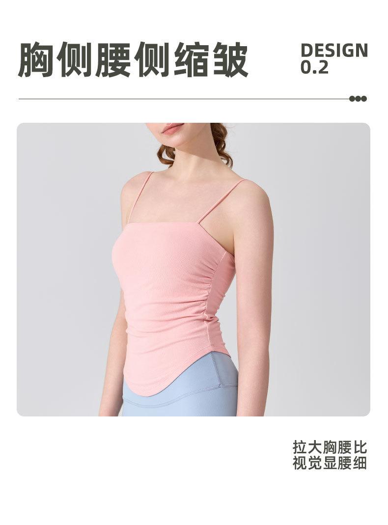 섹시한 아우터 서스펜더 브라, 고정 컵 가슴 패드, 요가 피트니스 탑, 여성용 주름진 슬리밍 러닝 스포츠 브라