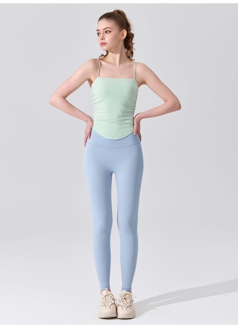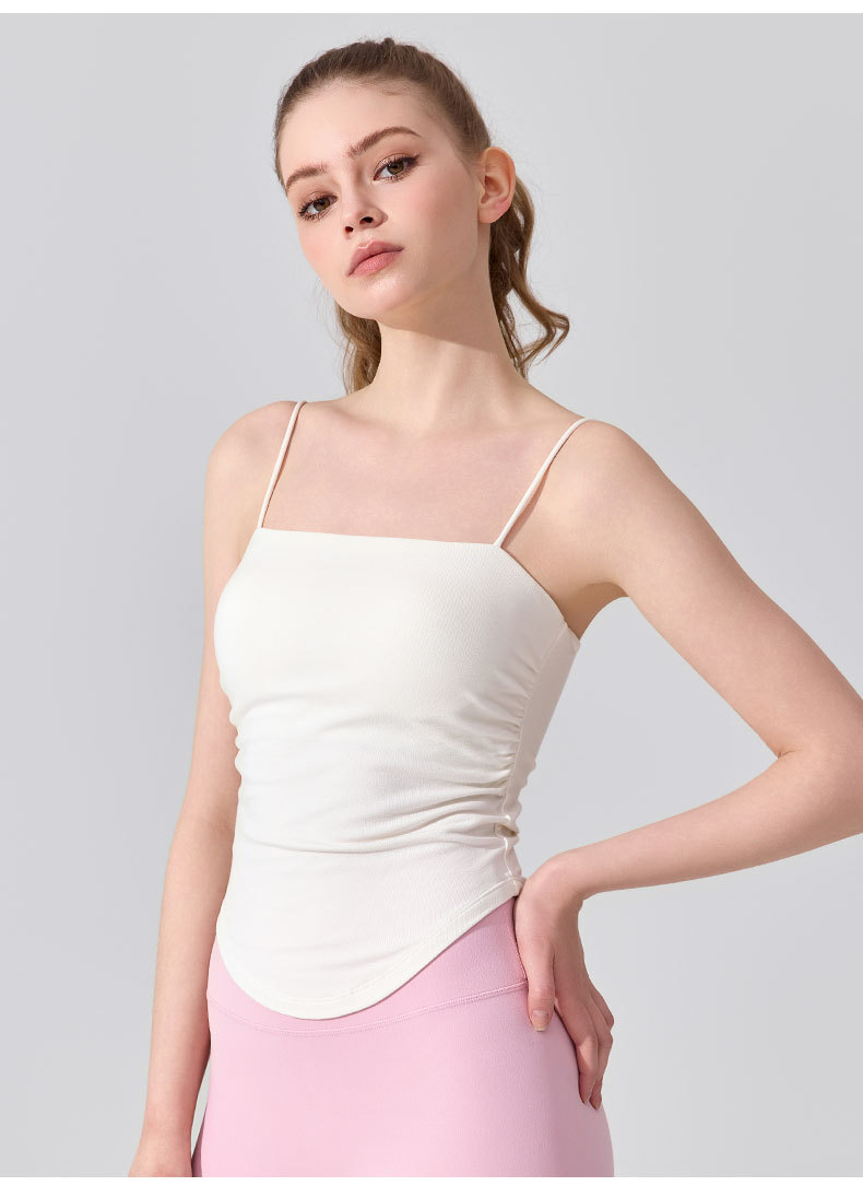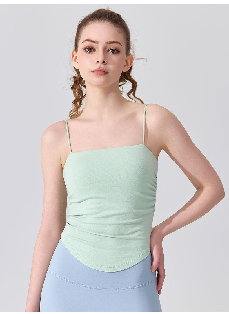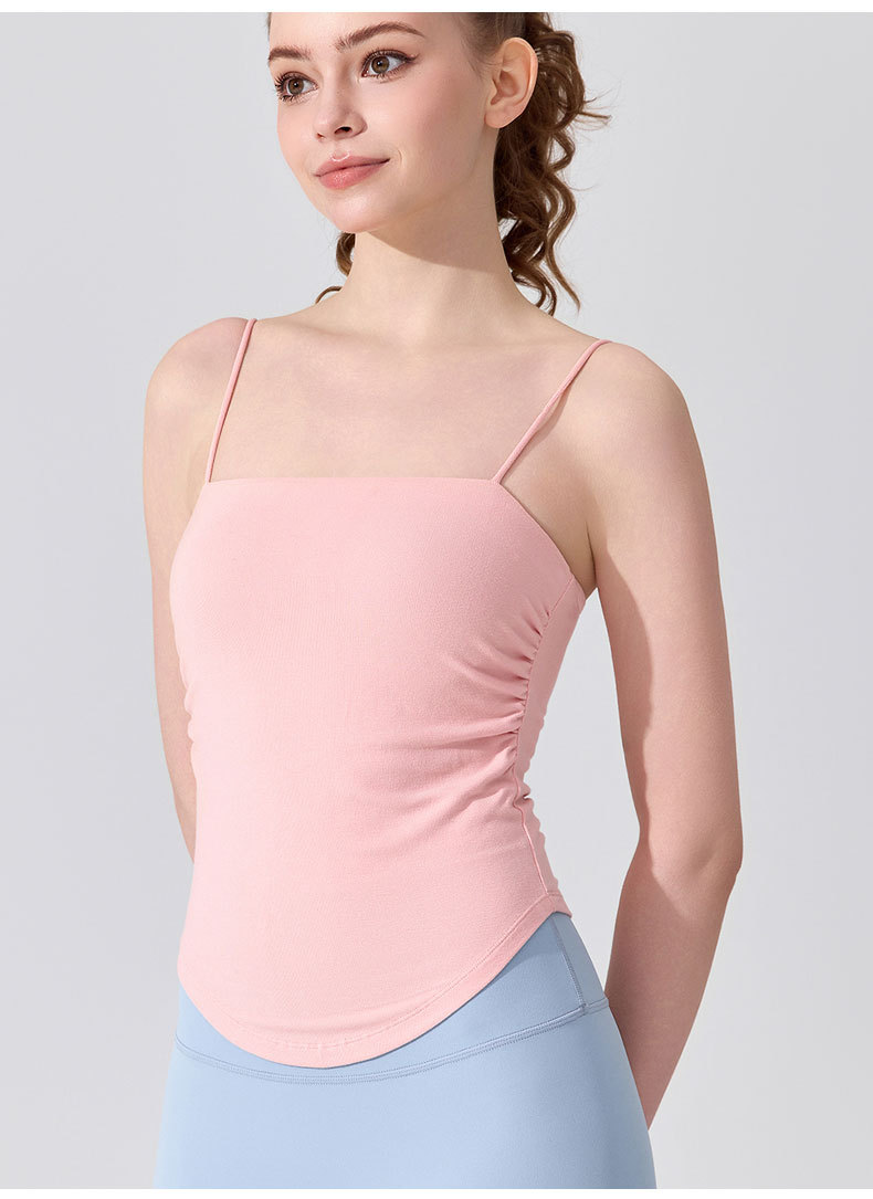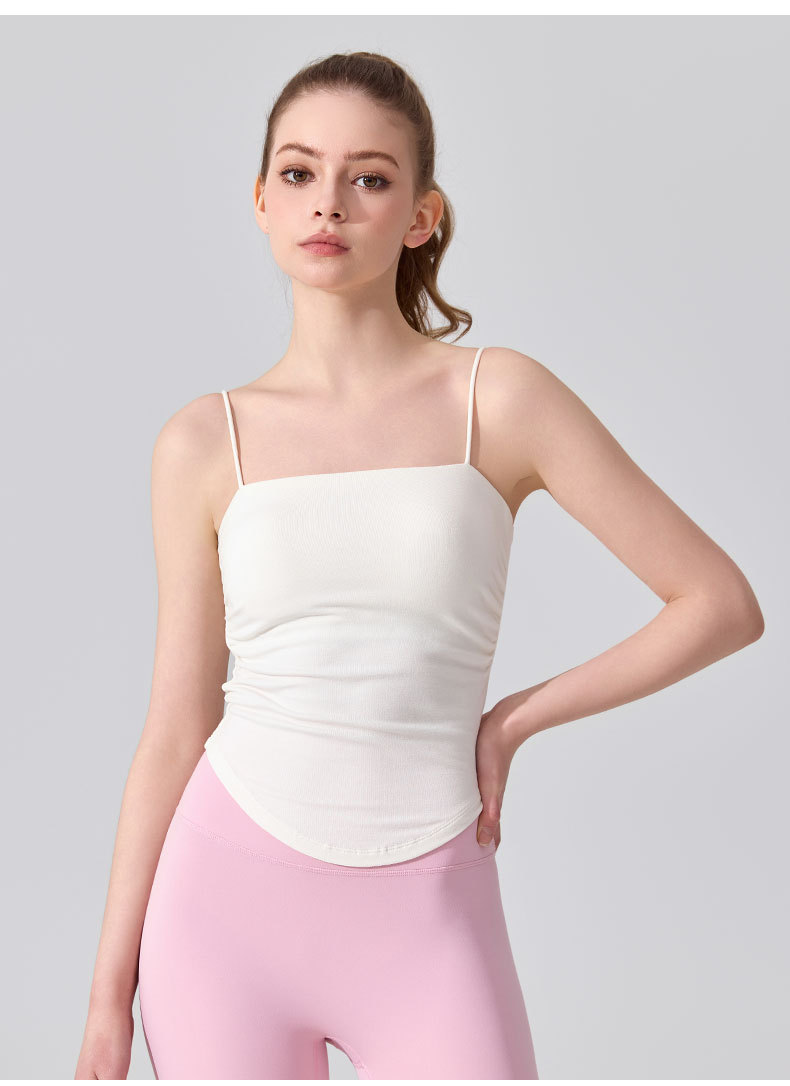 섹시한 아우터 서스펜더 브라, 고정 컵 가슴 패드, 요가 피트니스 탑, 여성용 주름진 슬리밍 러닝 스포츠 브라