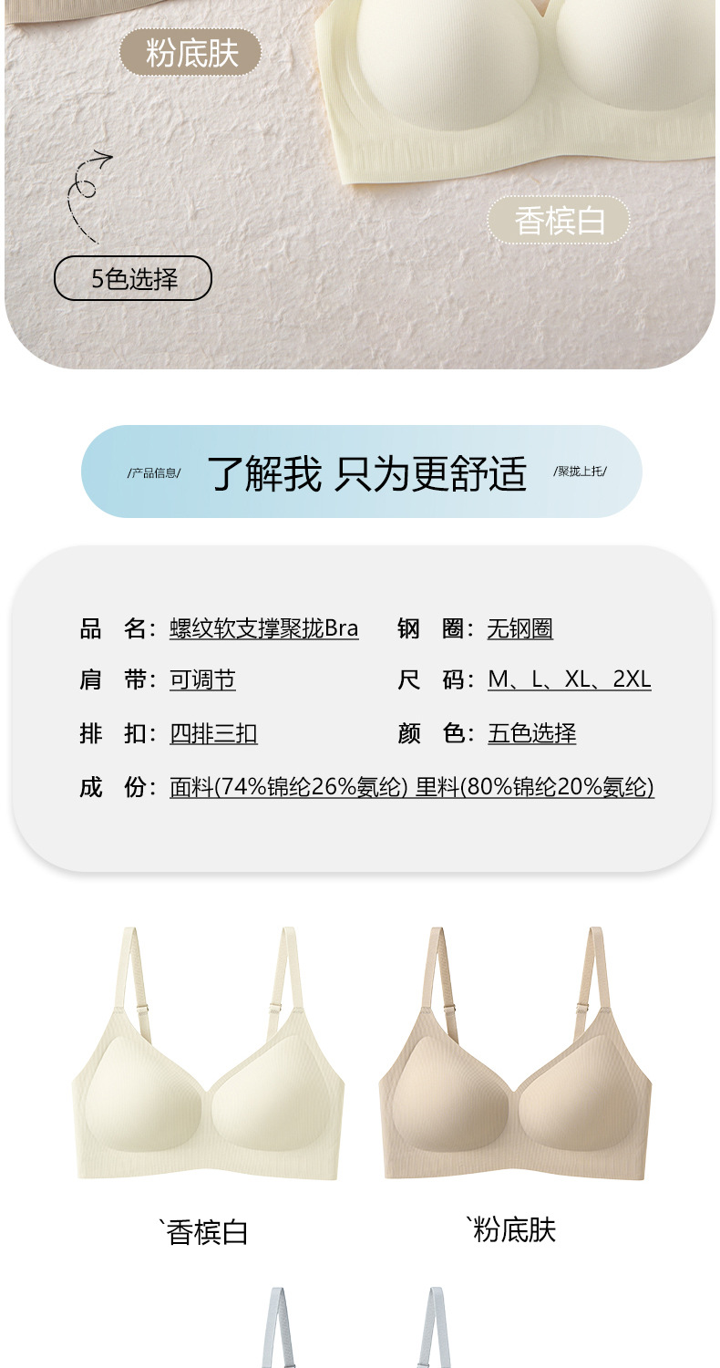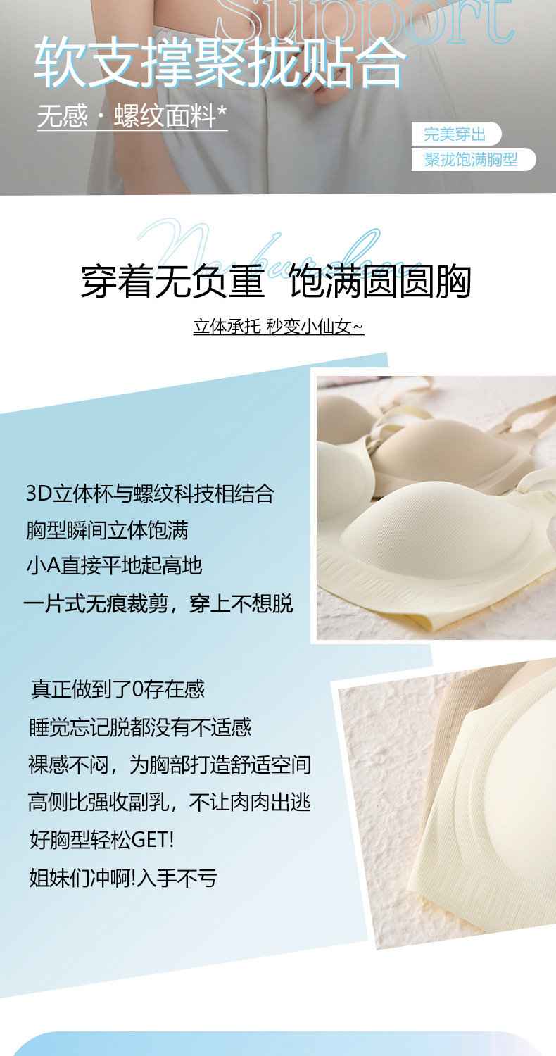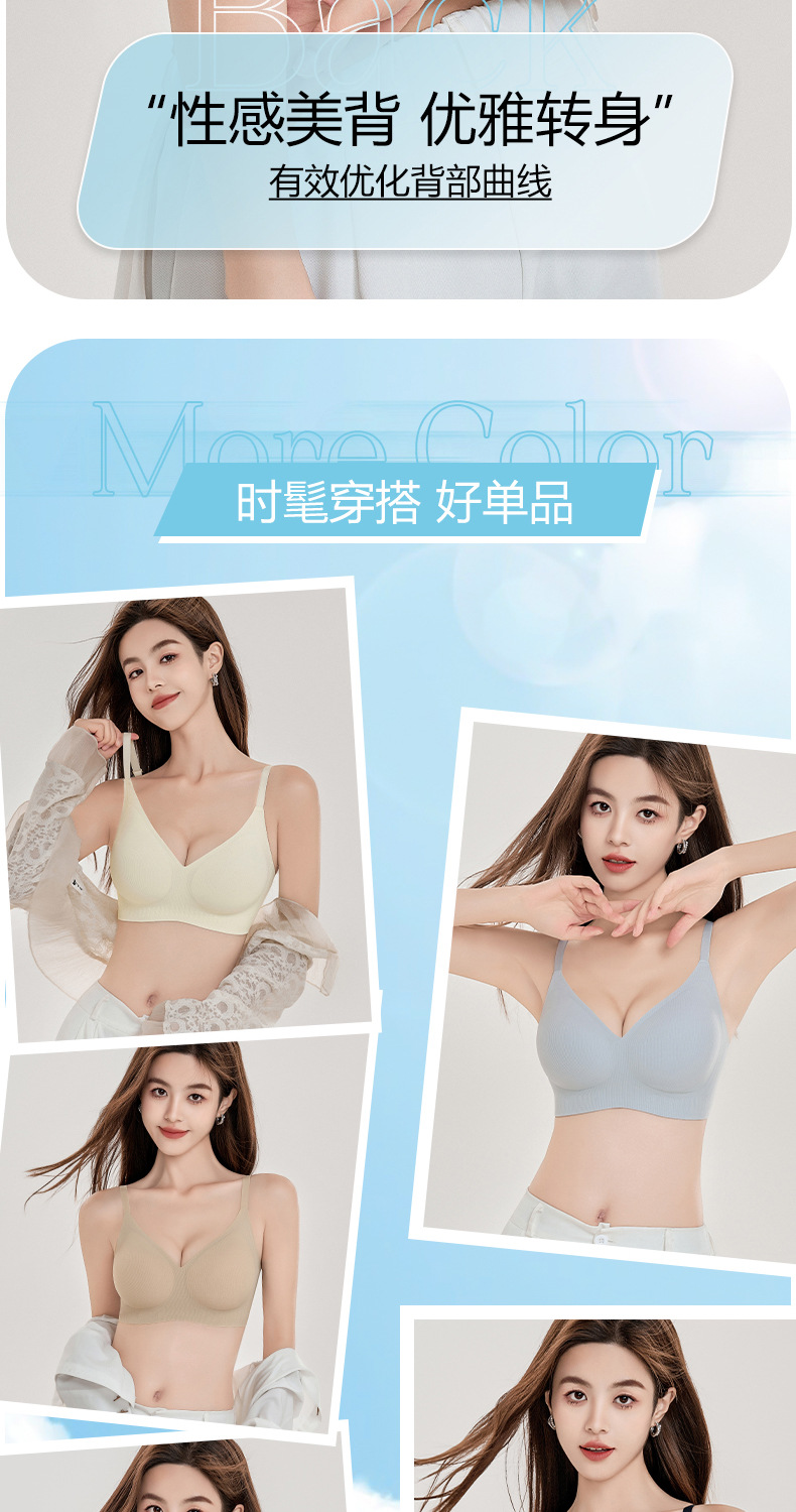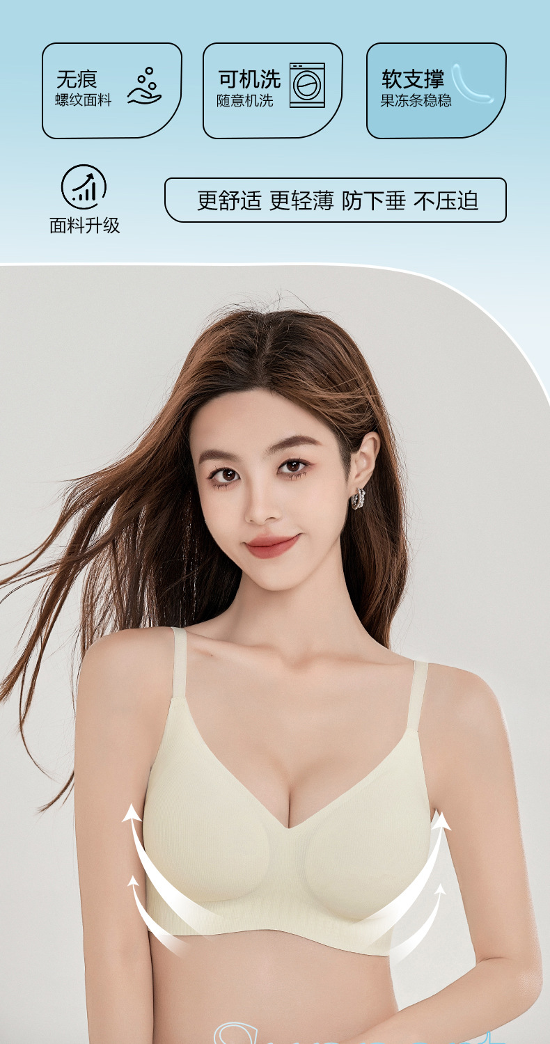 915 소프트 서포트, 심리스, 작은 가슴 푸쉬업, 통기성 고정컵 스포츠 브라, 처짐 방지 및 보조 가슴 수축 브라스토어 가기