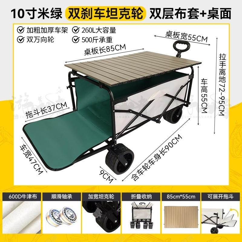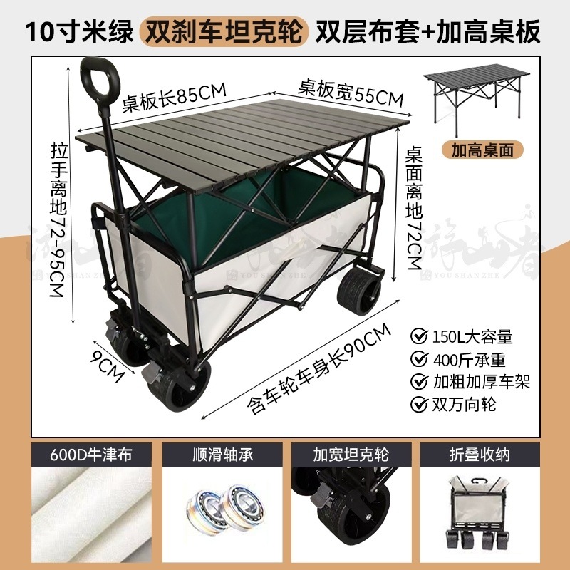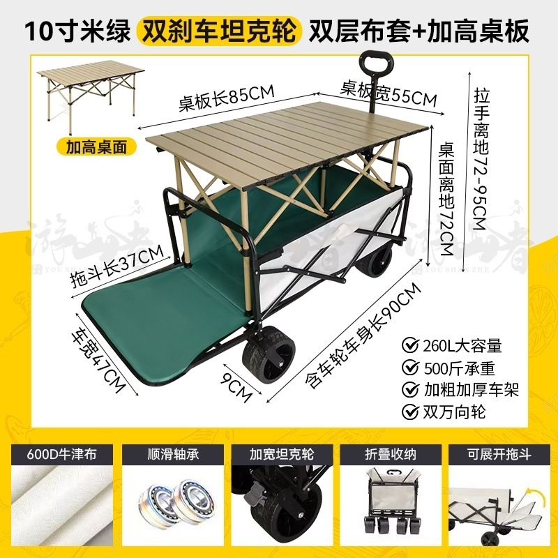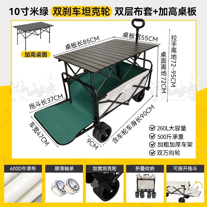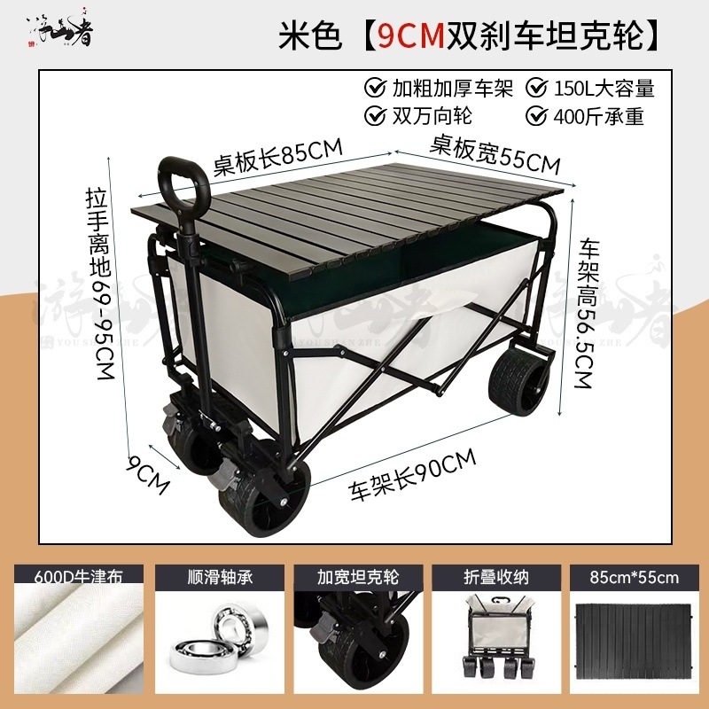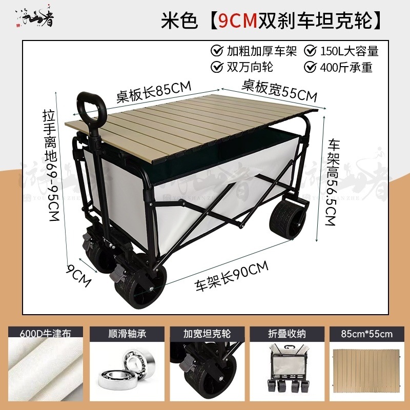 • 베이지 [이중 두꺼운 천-전체 강철 프레임] 높은 내하중 - 10inch 두꺼운 탱크 바퀴/안정적인 이중 브레이크/노점 노란색 테이블