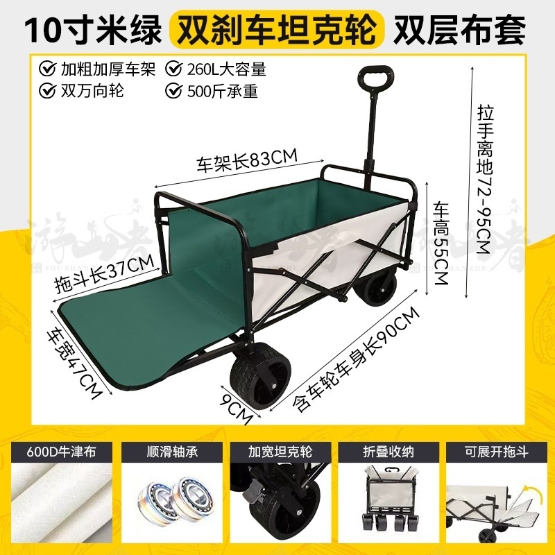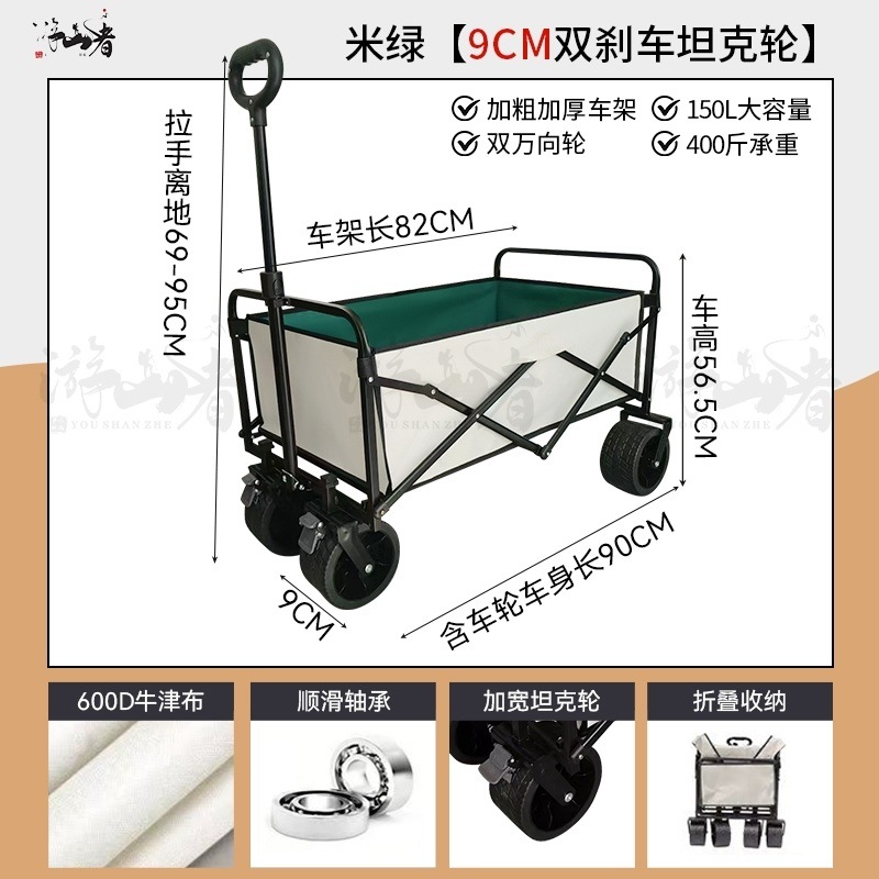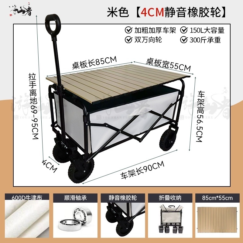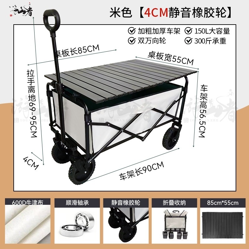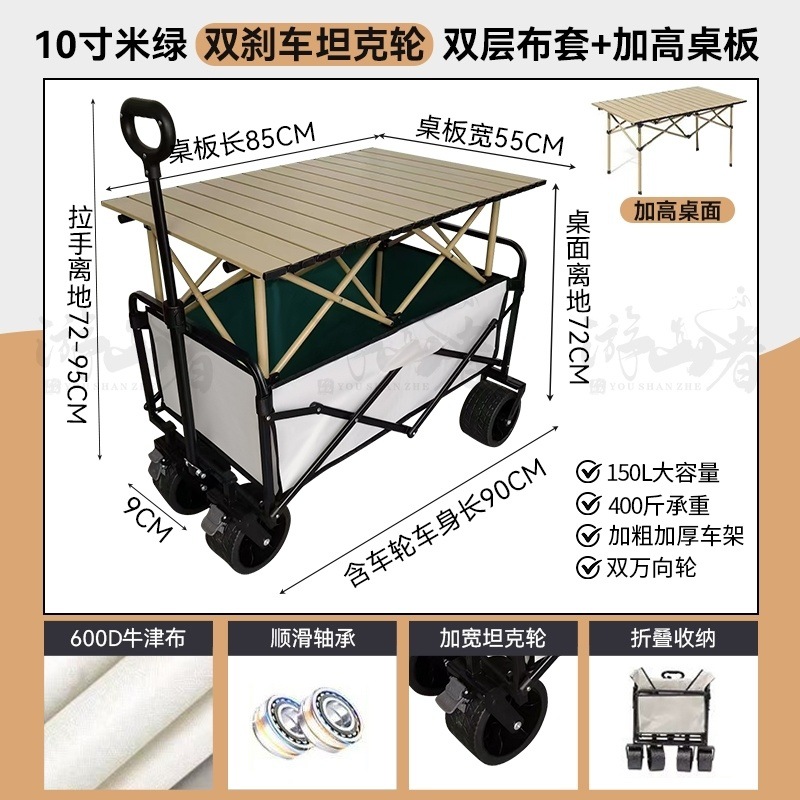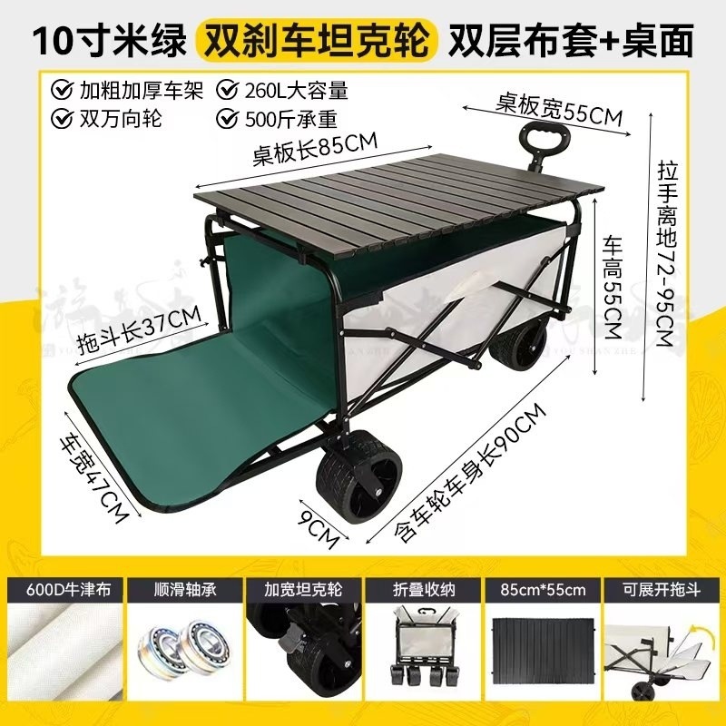 • 베이지 [이중 두꺼운 천-전체 강철 프레임] 높은 내하중 - 10inch 두꺼운 탱크 바퀴/안정적인 이중 브레이크/노점 노란색 테이블