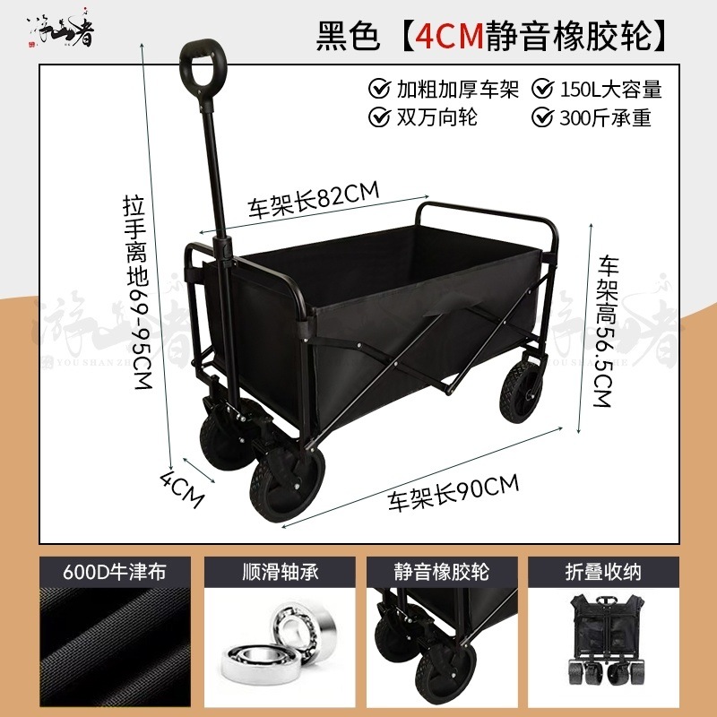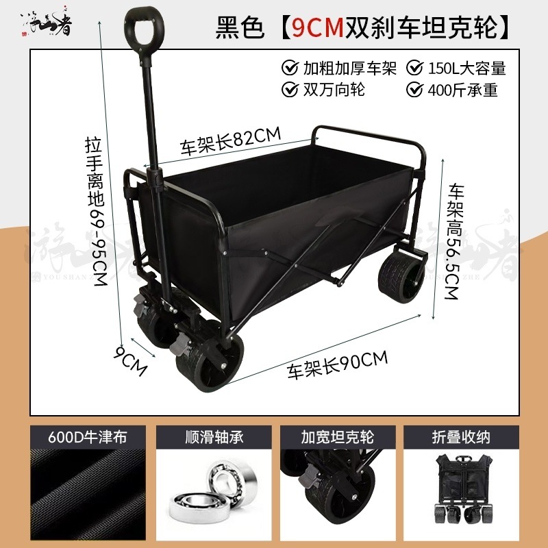 • 쿨 블랙 [이중 두꺼운 천 - 올 스틸 프레임] 높은 내하중 - 10inch 두꺼운 탱크 휠 / 안정적인 이중 브레이크 / 후면 개방 / 접이식 검정색 테이블