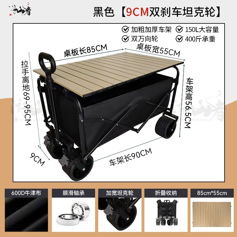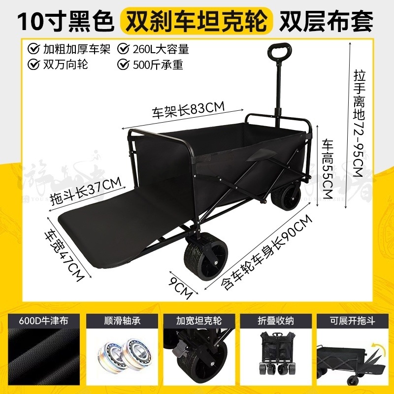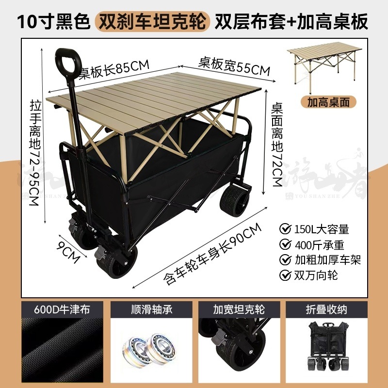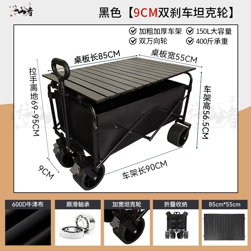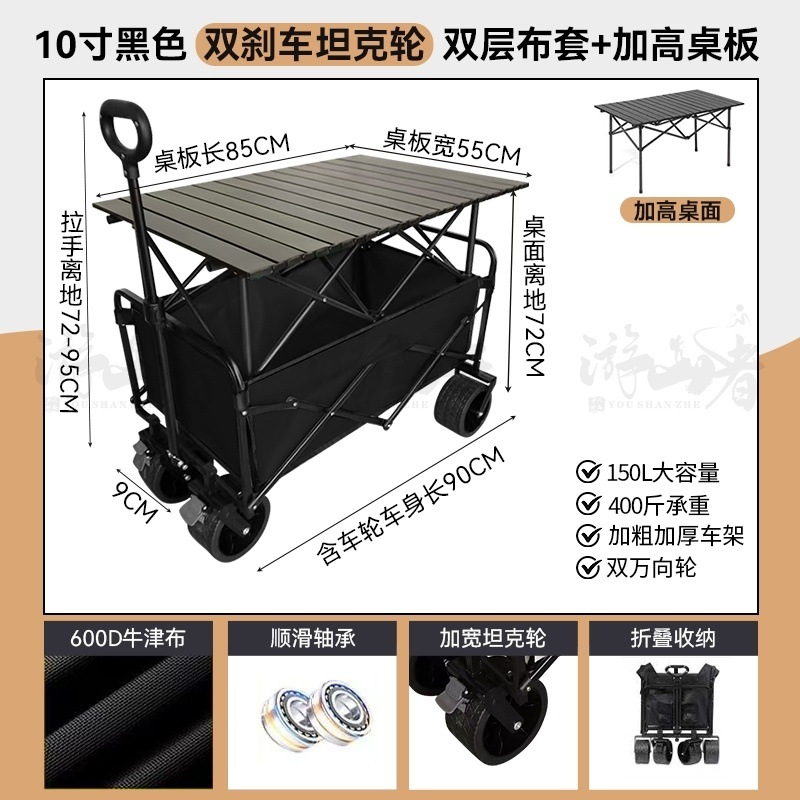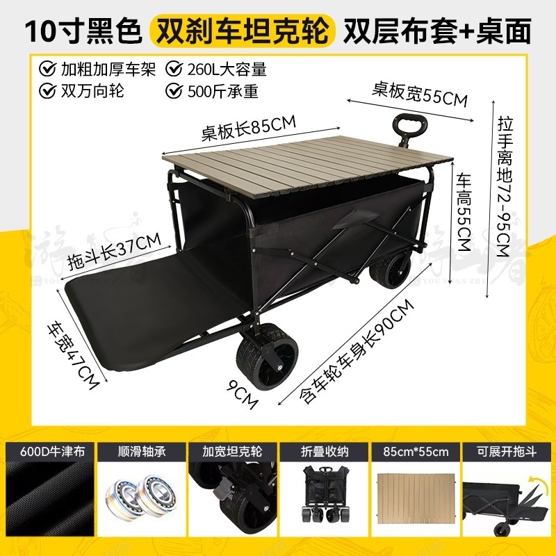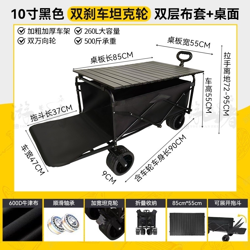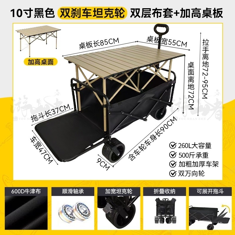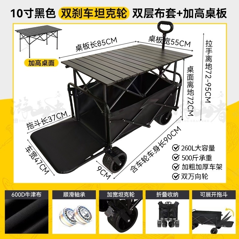 • 쿨 블랙 [이중 두꺼운 천-전체 강철 프레임] 높은 내하중 용량 - 10inch 두꺼운 탱크 바퀴/안정적인 이중 브레이크/노점 노란색 테이블