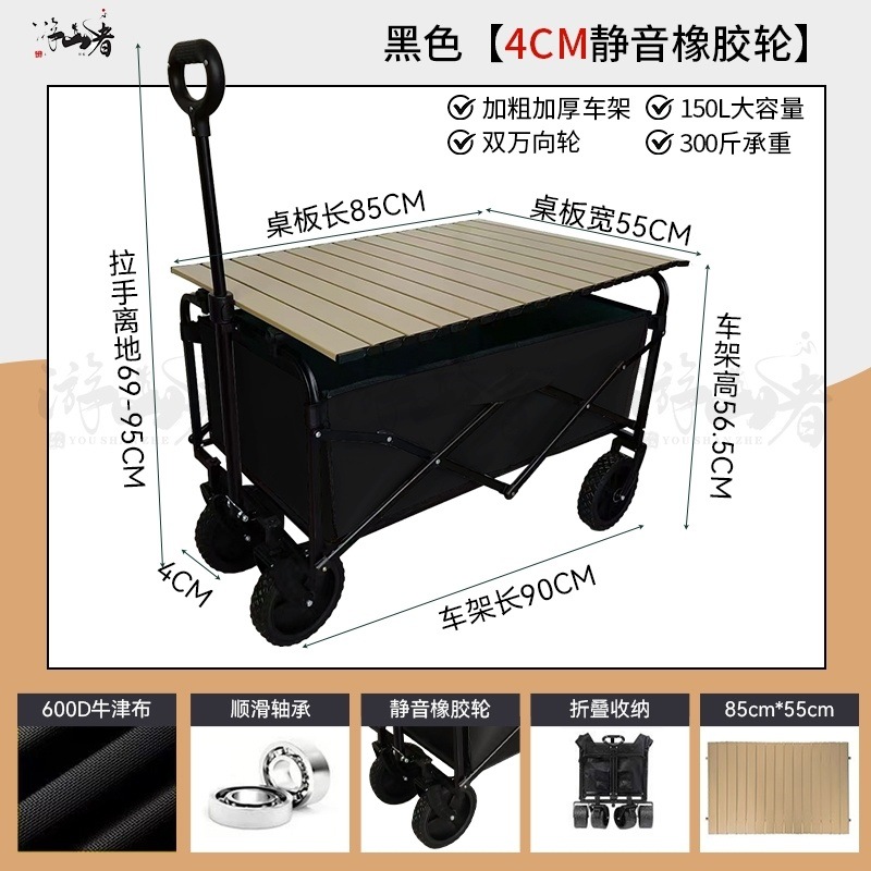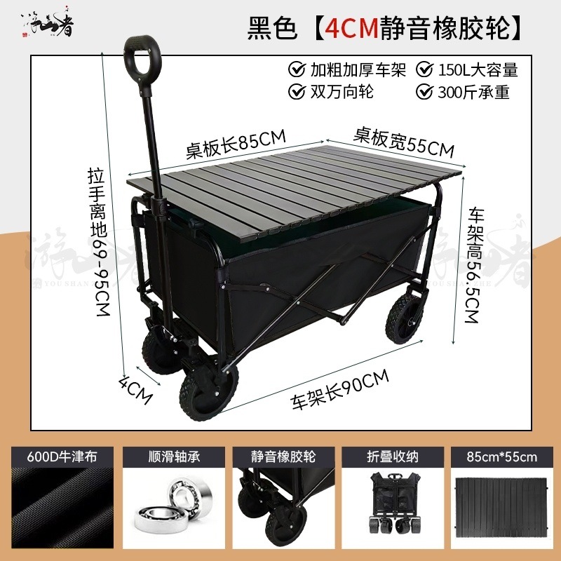 • 쿨 블랙 [이중 두꺼운 천 - 전체 강철 프레임] 높은 내하중 - 10inch 두꺼운 탱크 바퀴 / 안정적인 이중 브레이크 / 후면 개방 / 노점 노란색 테이블