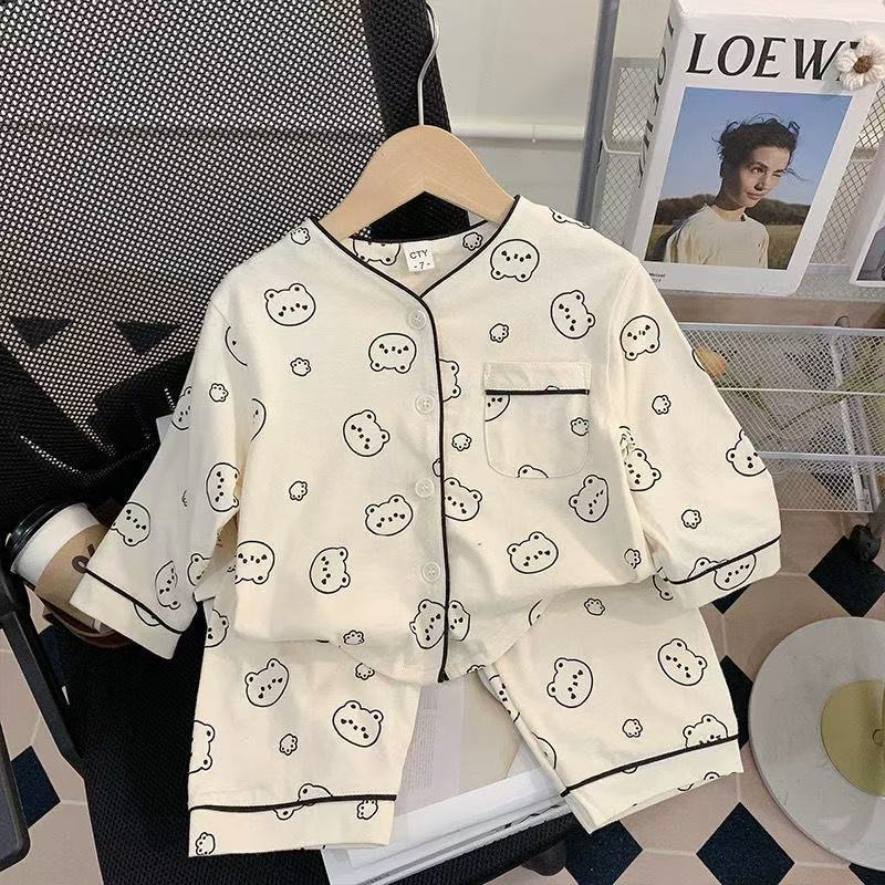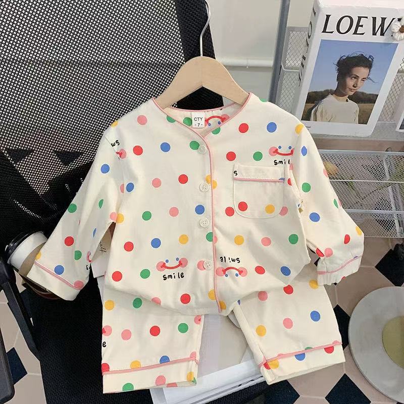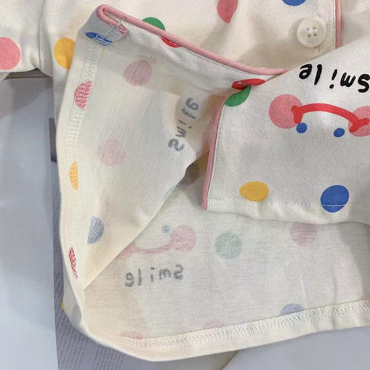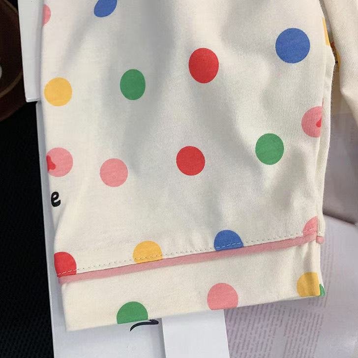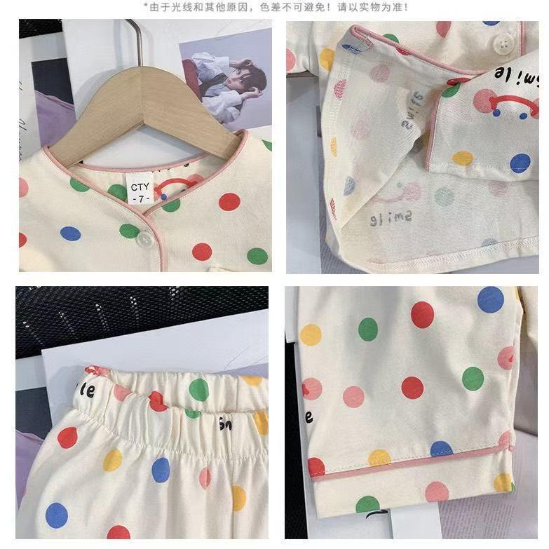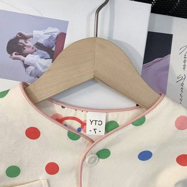 여자 잠옷 봄과 가을 2025 새로운 어린이 긴팔 여자 아기 가을 가정 의류 카디건 컬러 도트스토어 가기