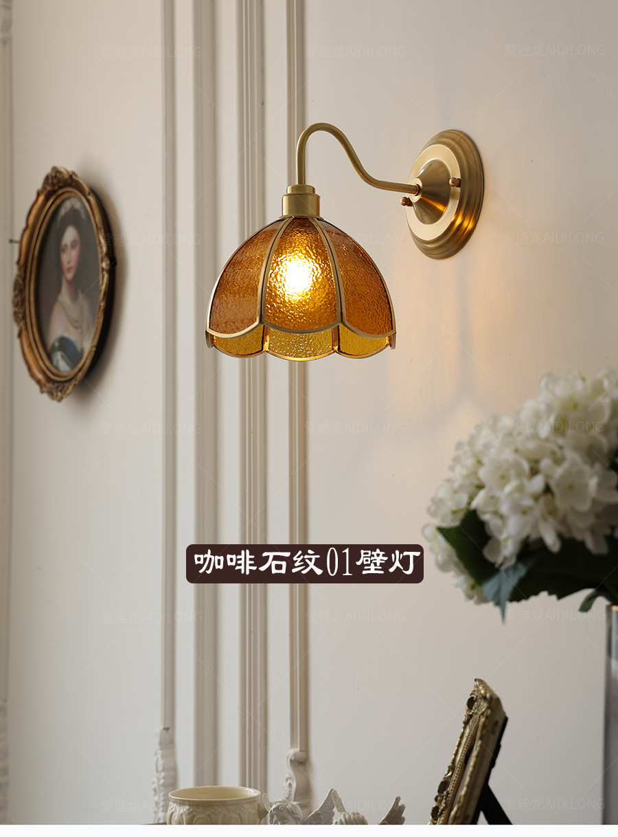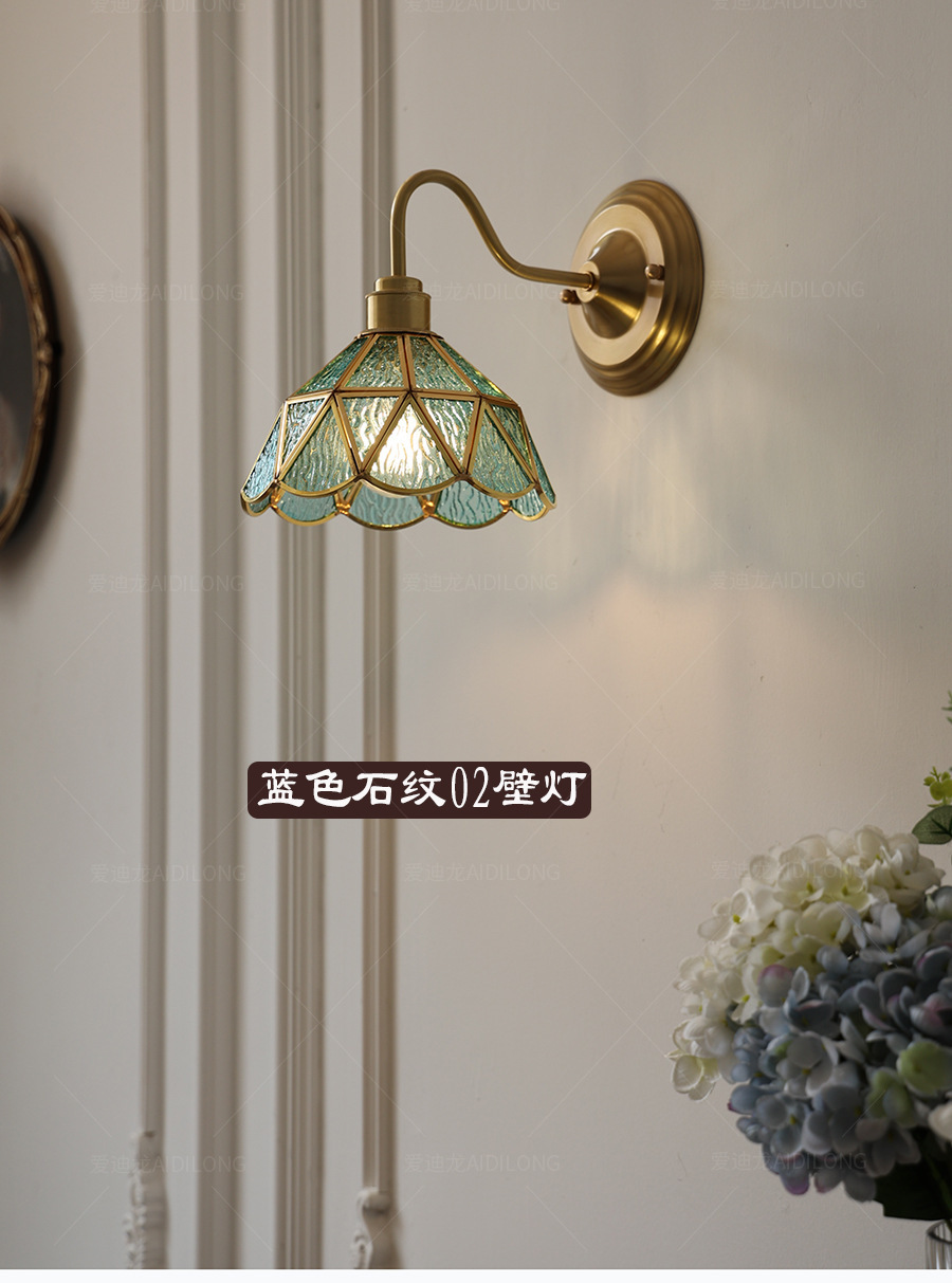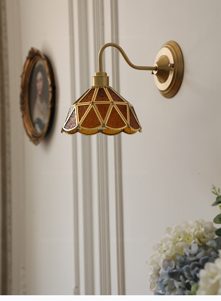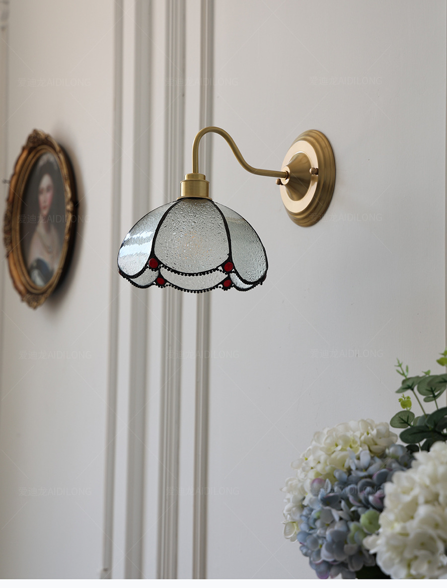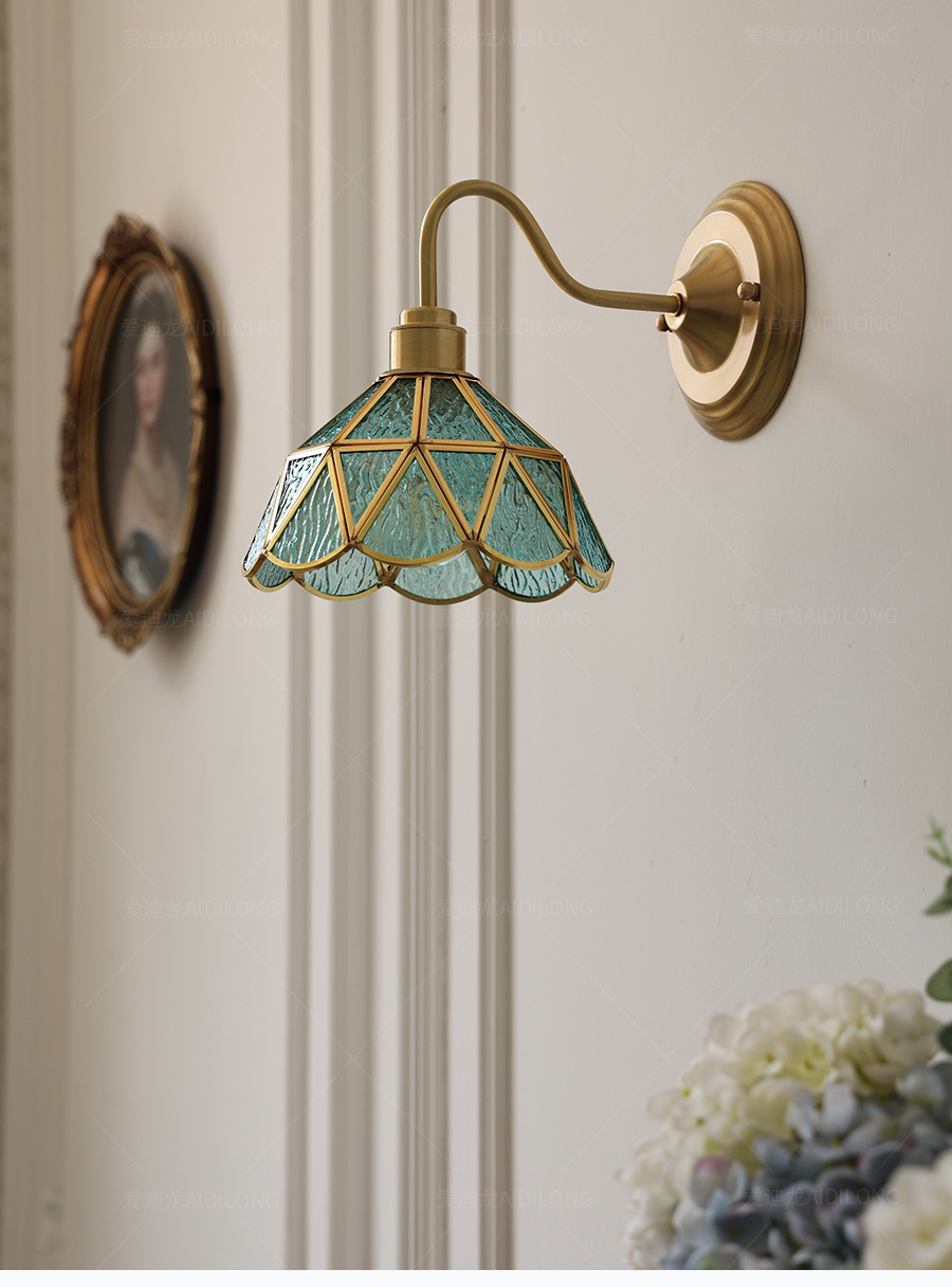 일본계 미국인 레트로 예술적 황동 유리 벽 램프 노르딕 홈스테이 멀리 침대 옆 계단 창조적 인 침실 램프스토어 가기
