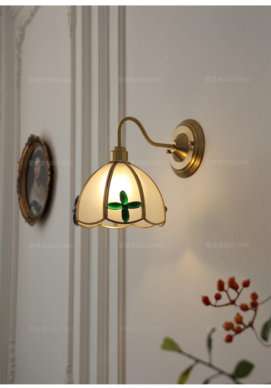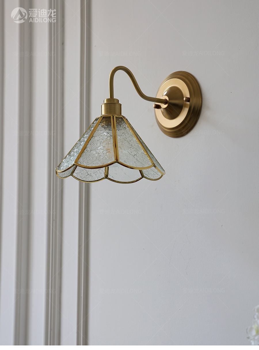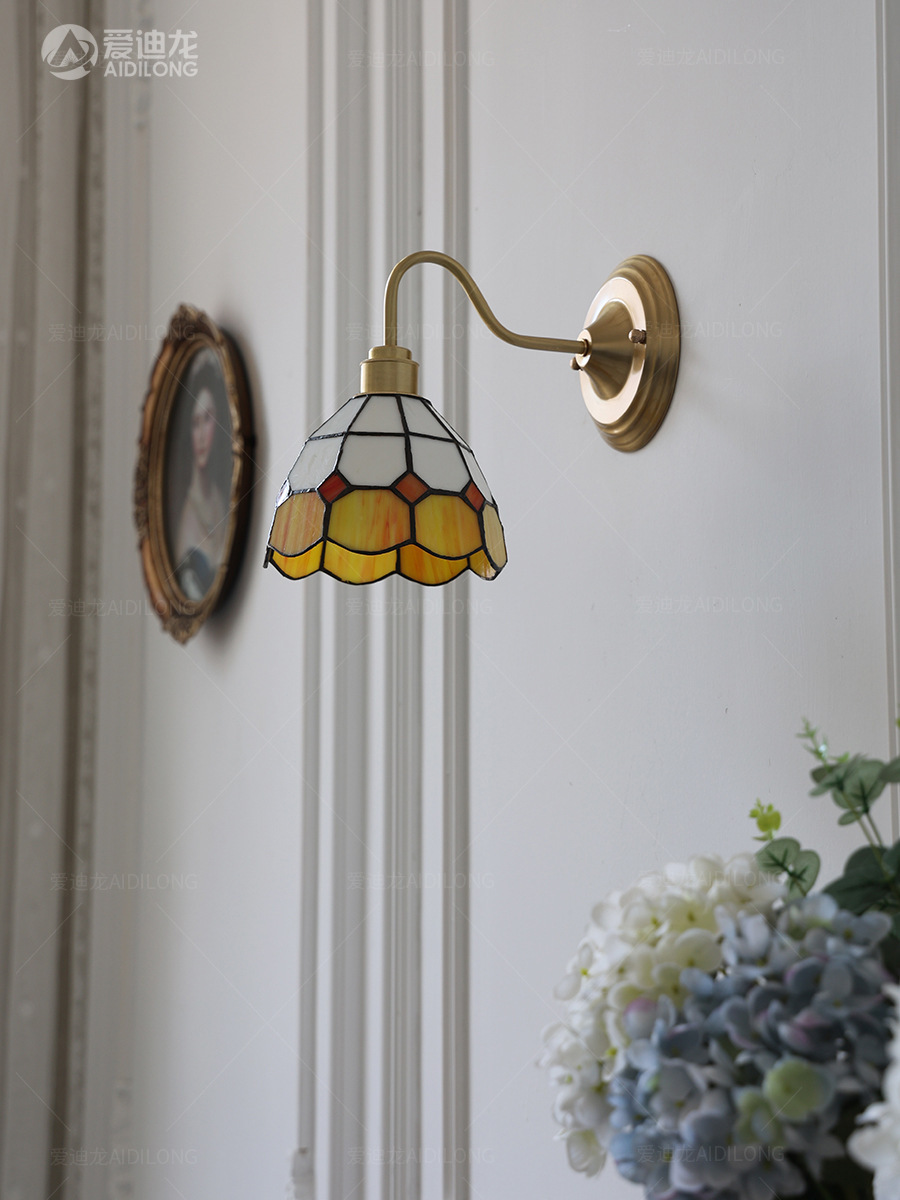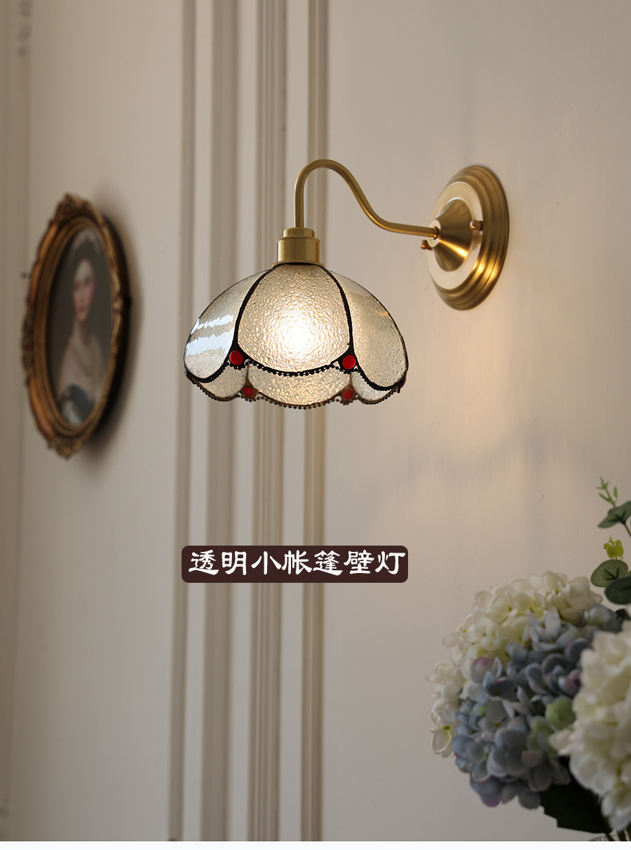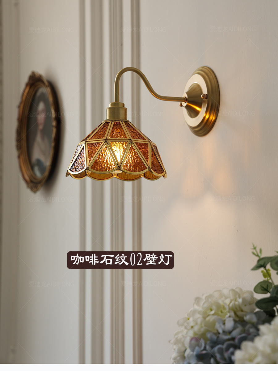 일본계 미국인 레트로 예술적 황동 유리 벽 램프 노르딕 홈스테이 멀리 침대 옆 계단 창조적 인 침실 램프스토어 가기