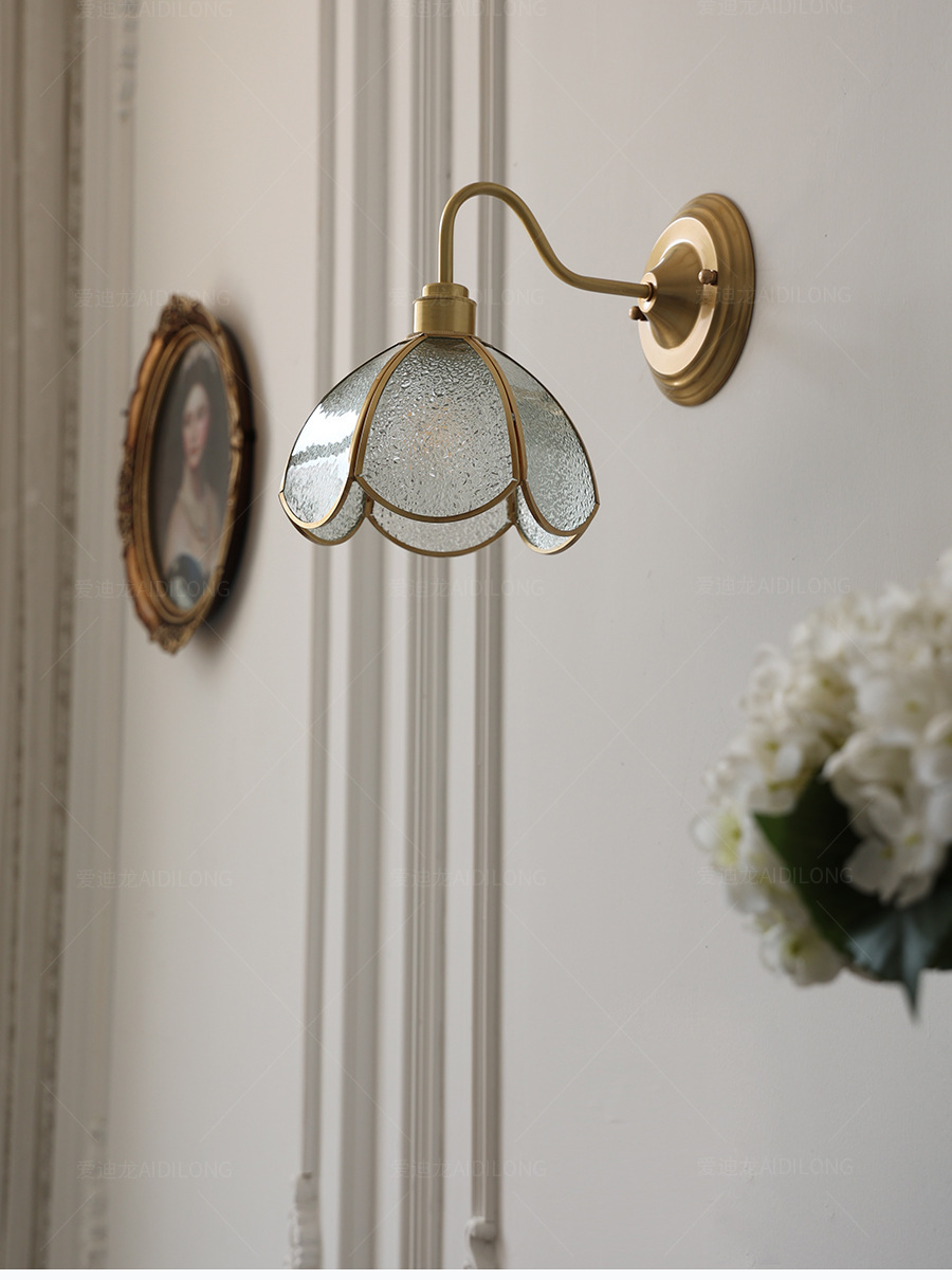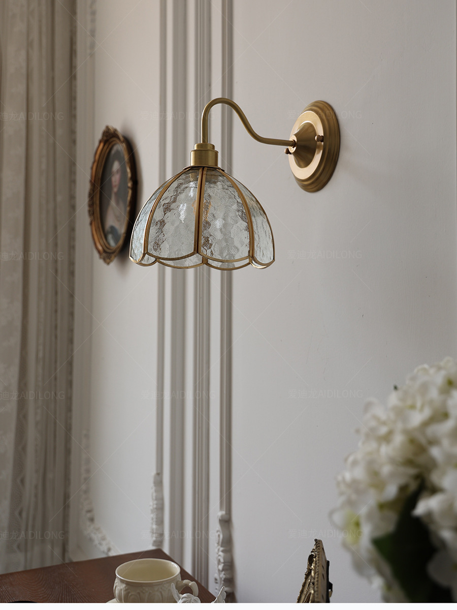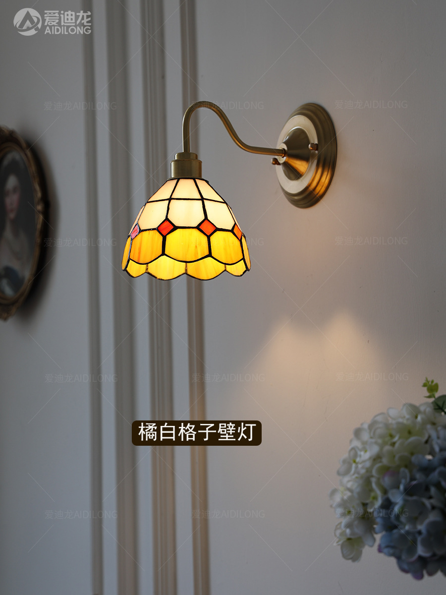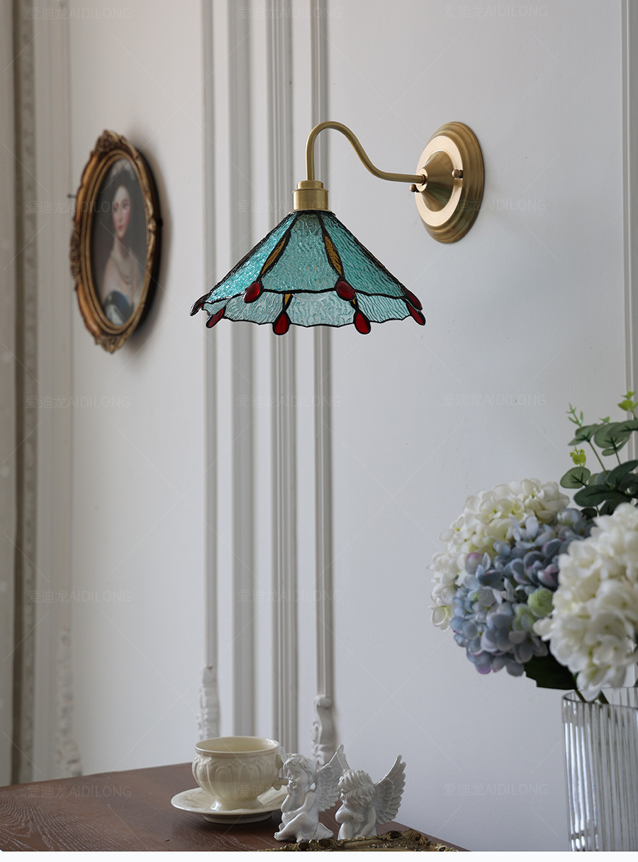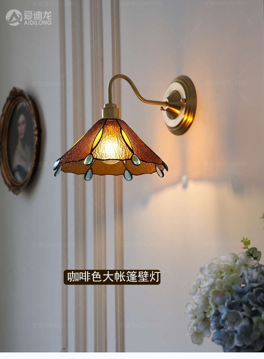 일본계 미국인 레트로 예술적 황동 유리 벽 램프 노르딕 홈스테이 멀리 침대 옆 계단 창조적 인 침실 램프스토어 가기