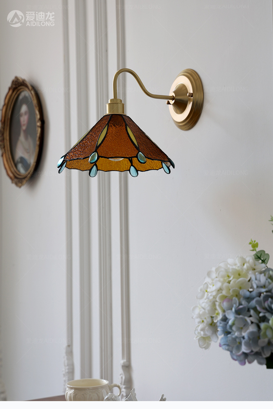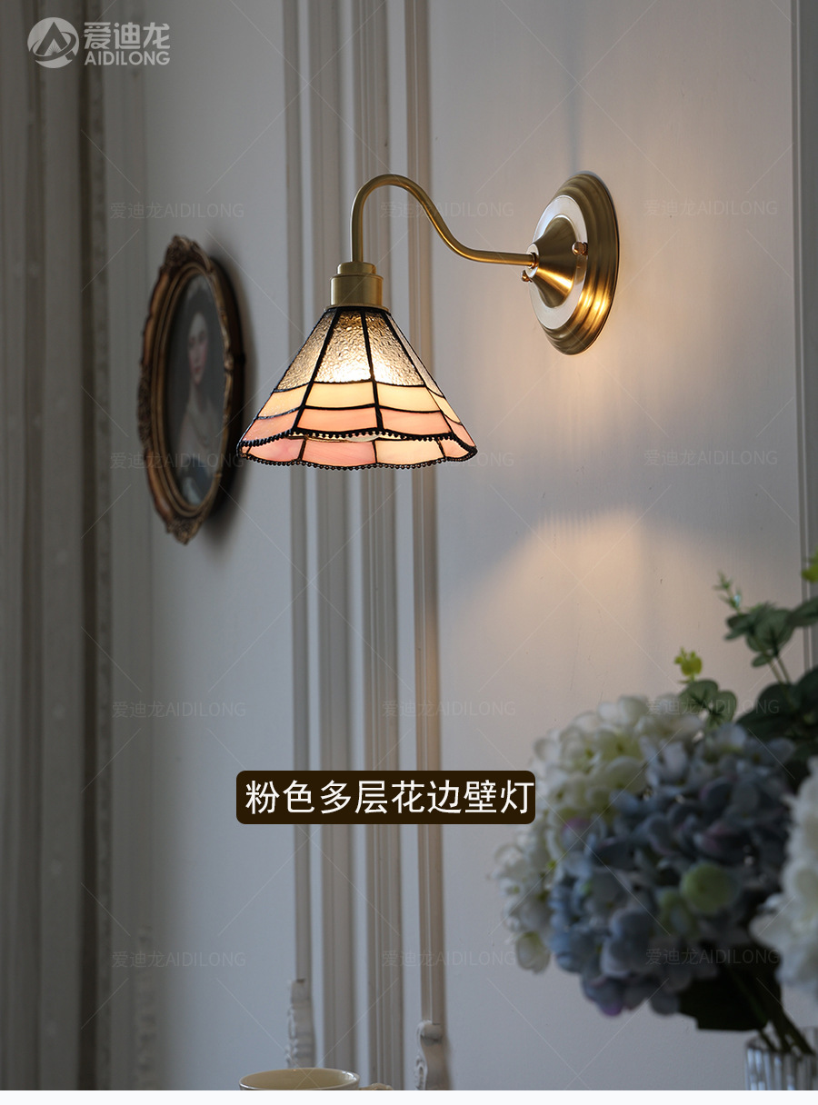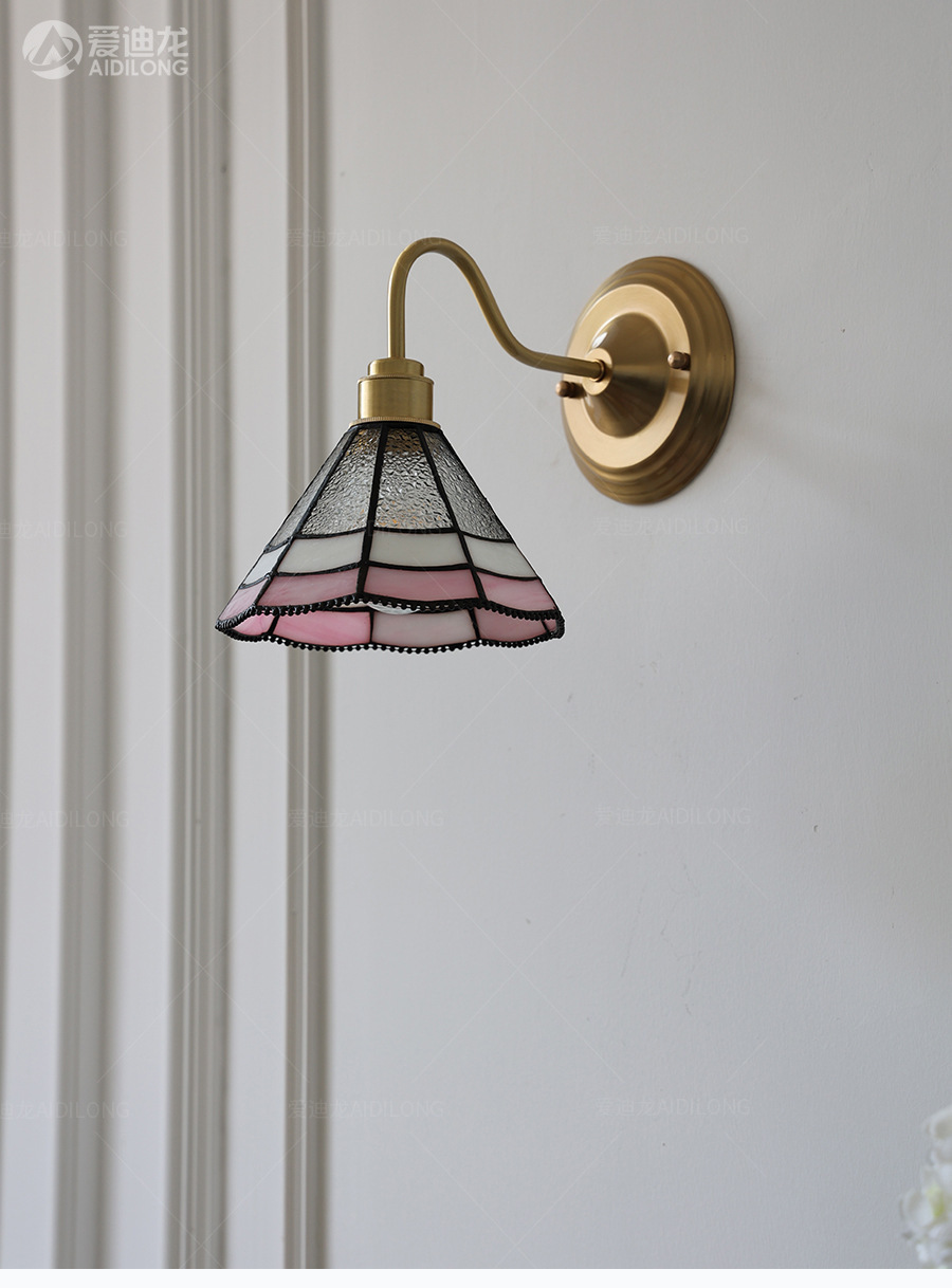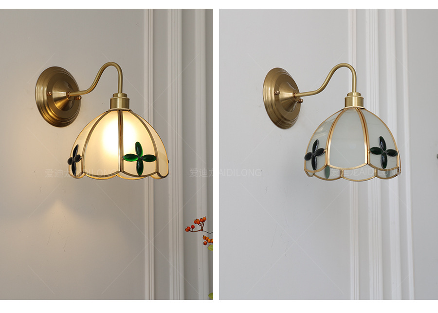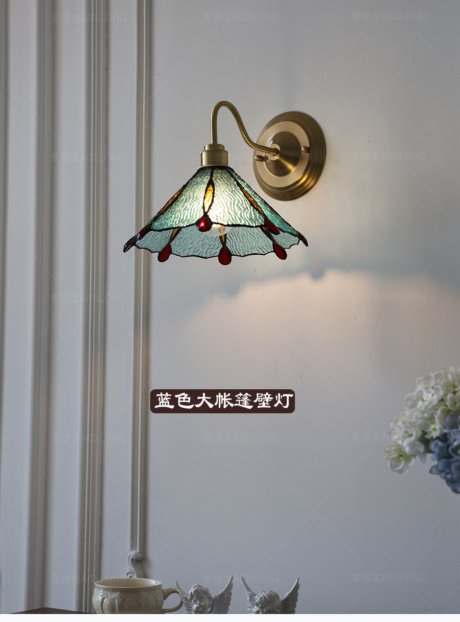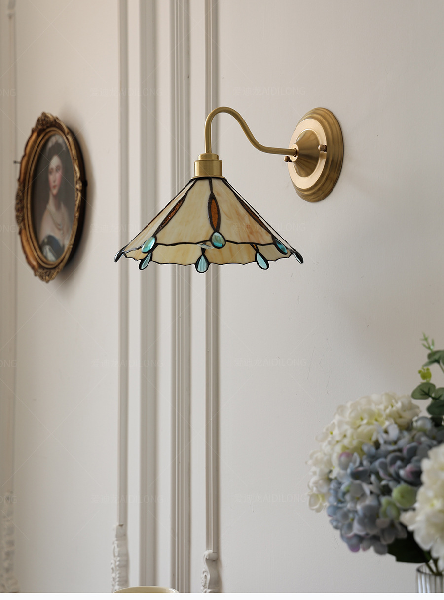 일본계 미국인 레트로 예술적 황동 유리 벽 램프 노르딕 홈스테이 멀리 침대 옆 계단 창조적 인 침실 램프스토어 가기