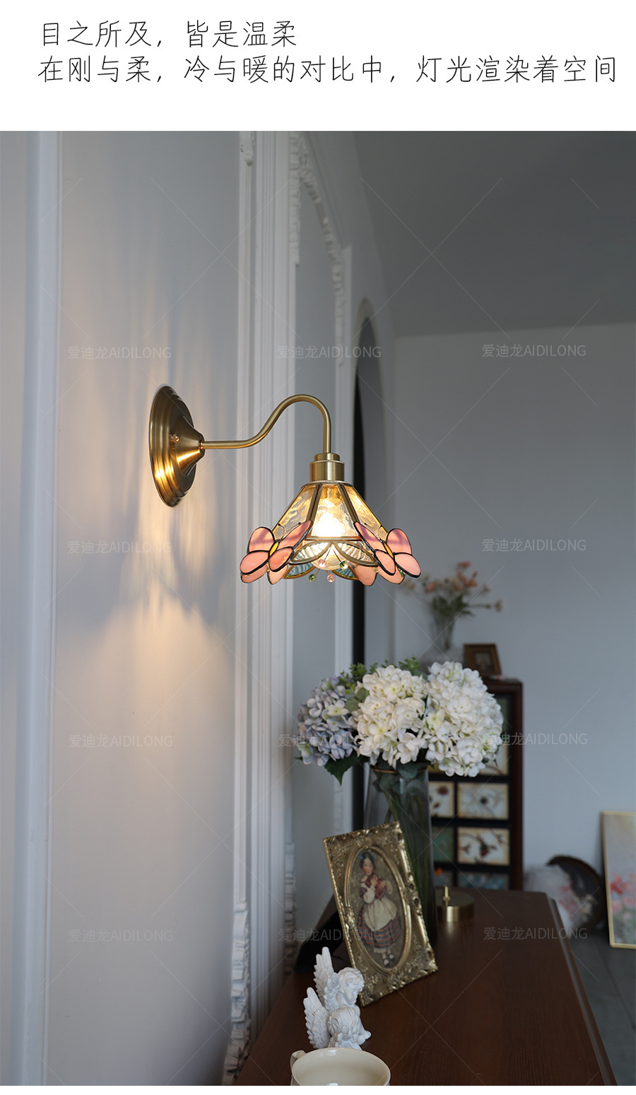 • 핑크 다층 레이스 벽 램프 - 황동 스타일