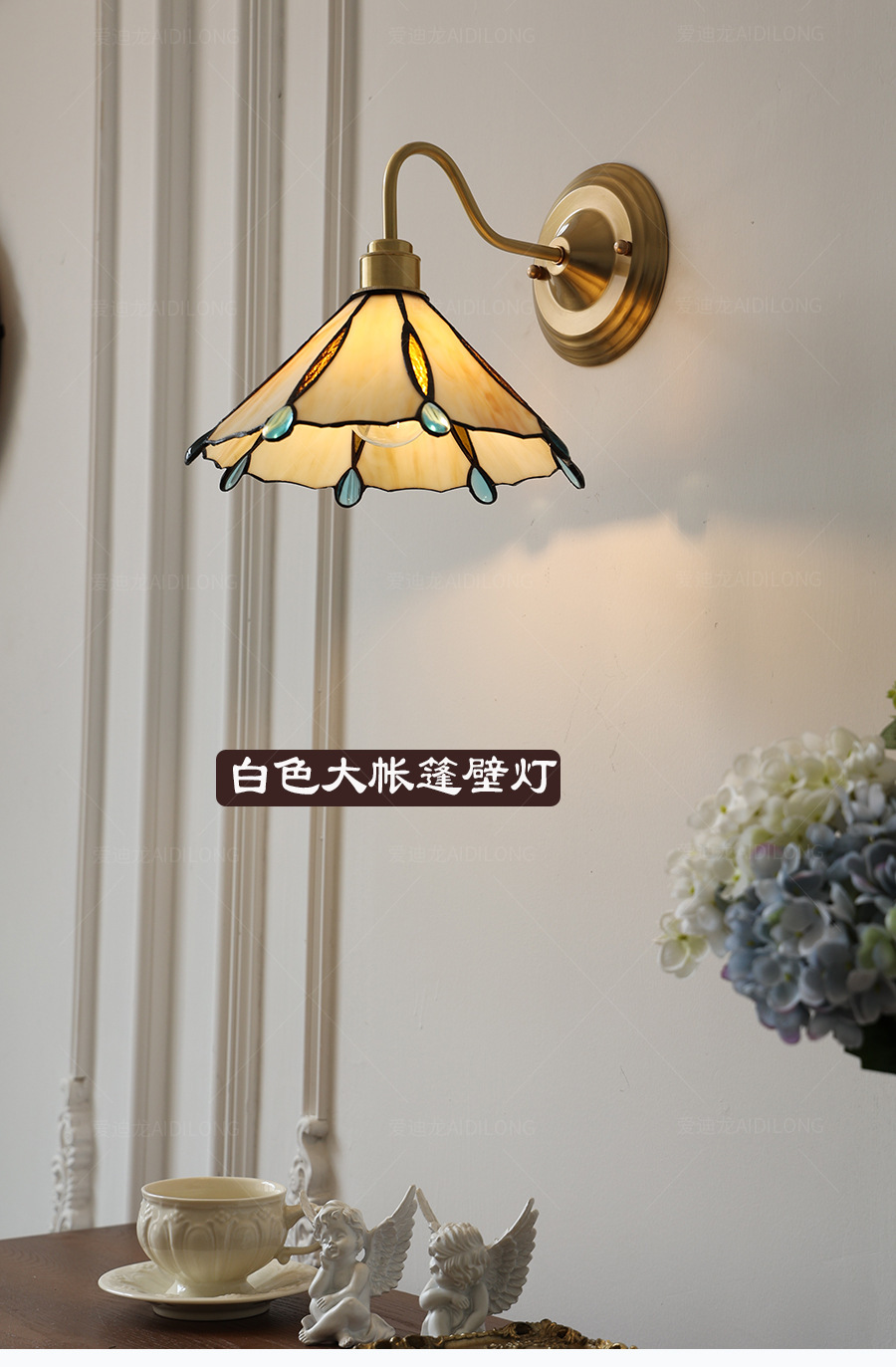 • 흰색 대형 텐트 벽 램프 - 황동 스타일