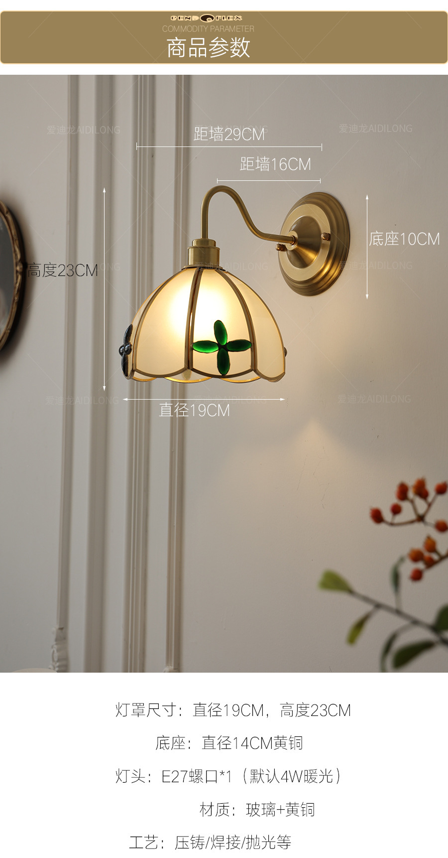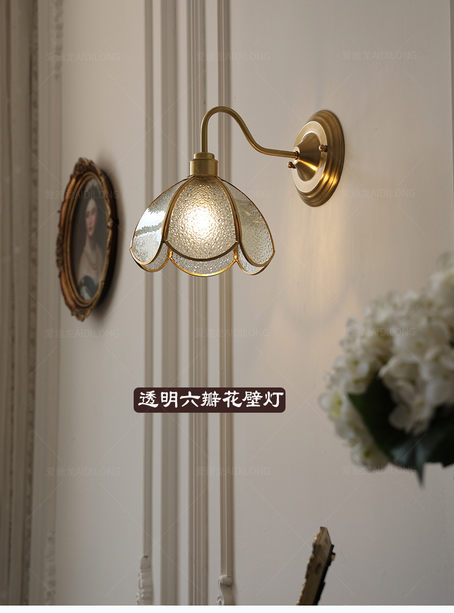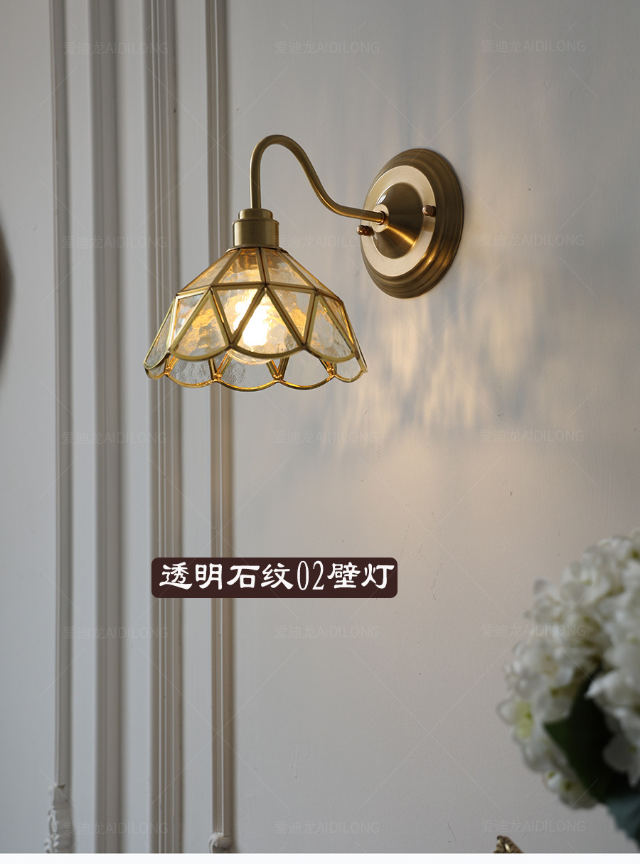 日式美式复古文艺黄铜玻璃壁灯北欧民宿过道床头楼梯创意卧室灯具
