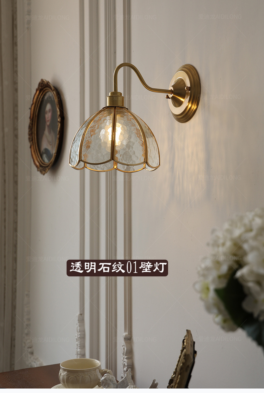 • 스톤 패턴 01 벽 램프-투명-황동 스타일