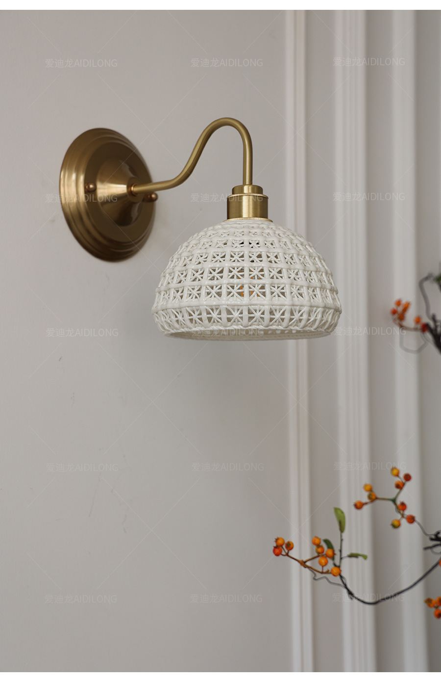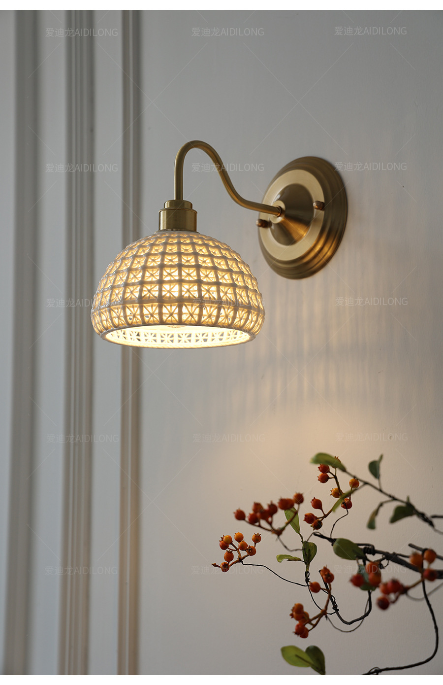 • 세라믹 바구니 벽 램프 - 황동 스타일