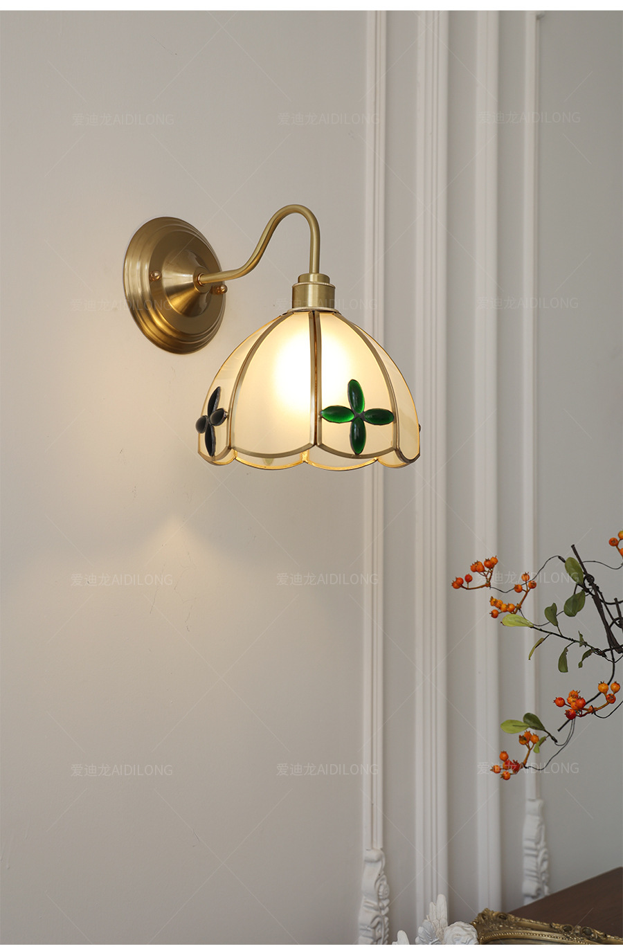 • 녹색 다층 레이스 벽 램프 - 황동 스타일