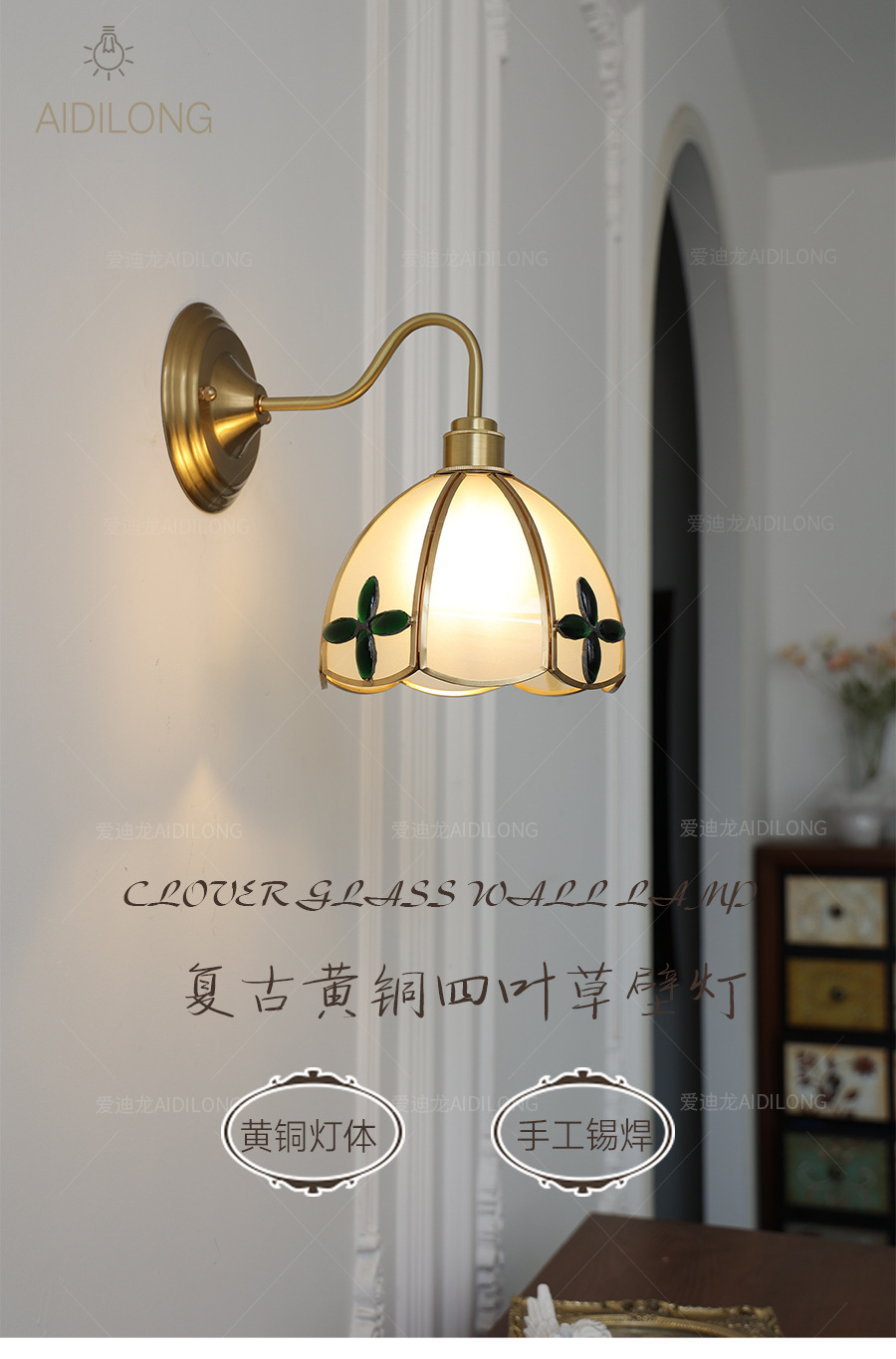 • 네잎 클로버 벽 램프 - 황동 스타일