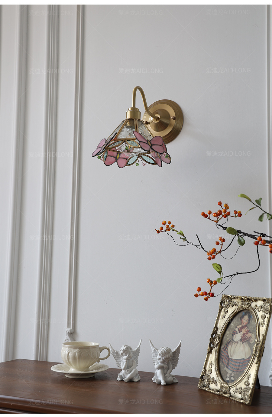 • 핑크 나비 벽 램프 - 황동 스타일