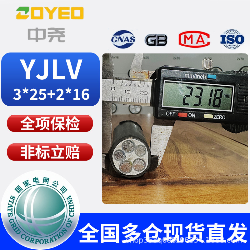 • 국가 표준 YJLV3*25+2*16 평방 미터(가공)