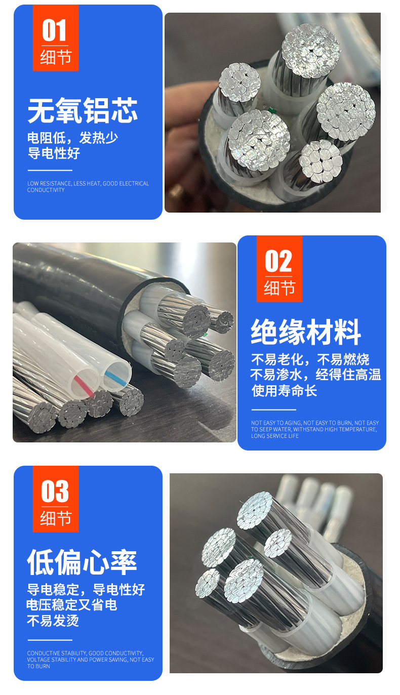 국가 표준 알루미늄 코어 케이블 4/5 코어 16 25 35 50 70 95 평방 매장 케이블 3상 4선 알루미늄 케이블스토어 가기