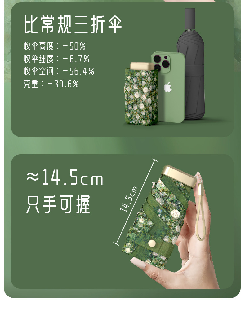 원래 디자인 신선한 소형 태양 우산 여성의 휴대용 이중 목적 차양 선 스크린 자외선 차단 접이식 우산