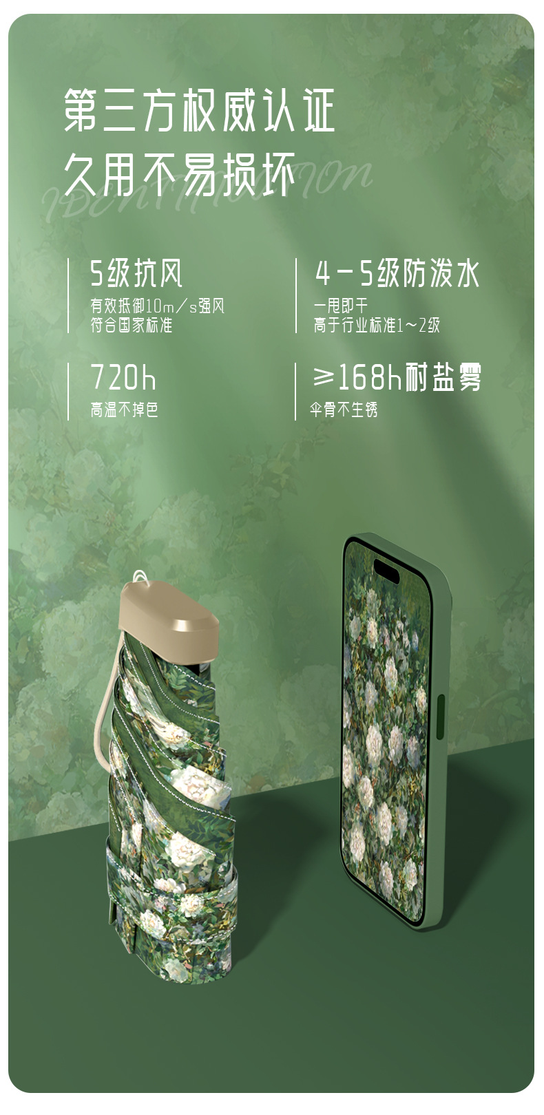 • 핑크 가든-골드 프레임 컬러 글루-카드 우산