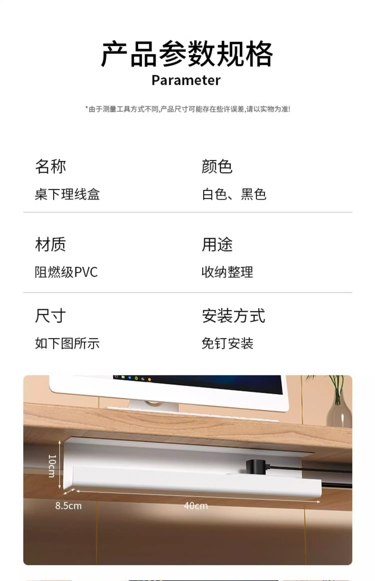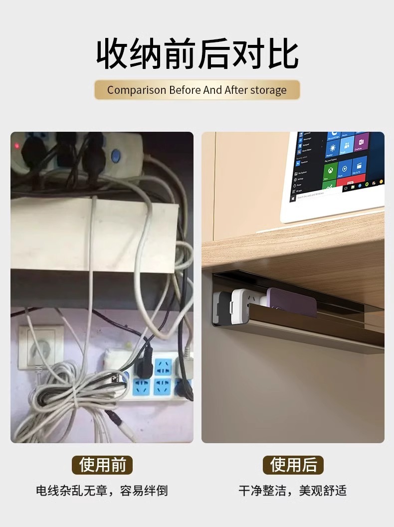 책상 아래 케이블 관리 랙, 전선 보관 슬롯, 컴퓨터 책상 아래 플러그인 스트립, 고정 케이블 관리 상자, 케이블 관리, 펀칭 없음스토어 가기