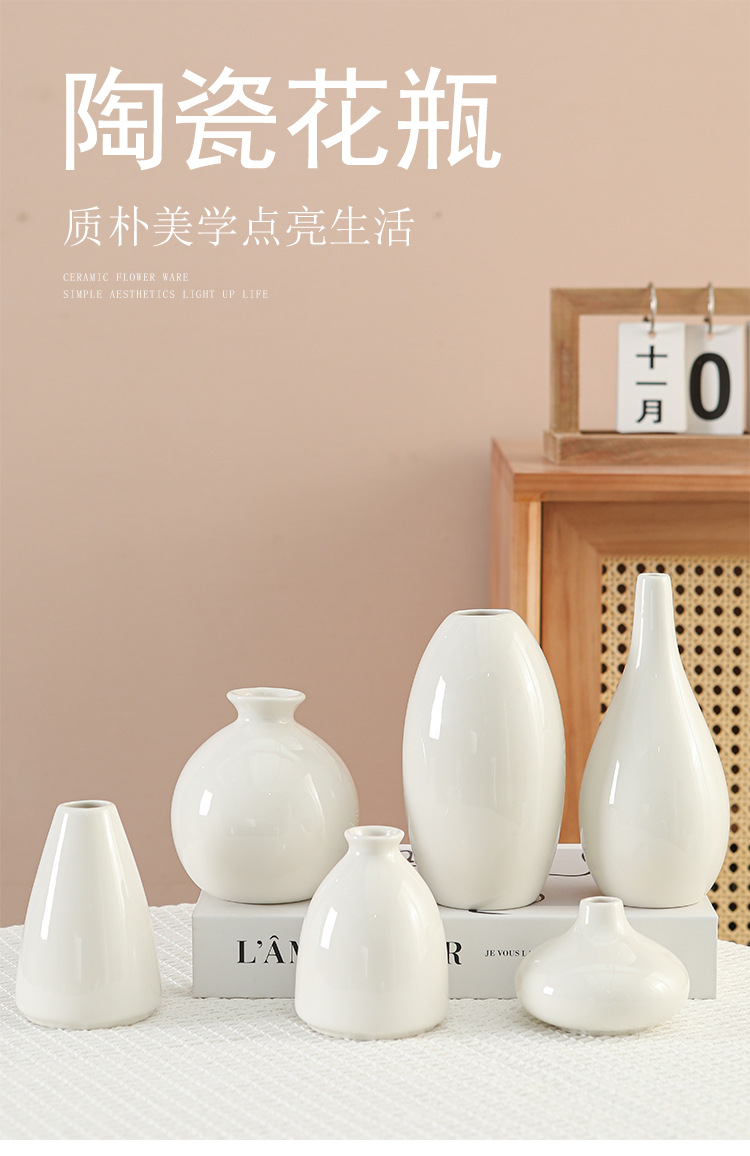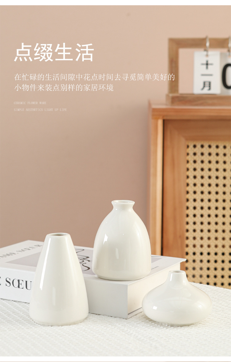 Ins 화이트 세라믹 꽃병 수경 꽃 배열 데스크탑 장식 작은 신선한 꽃병 아로마 테라피 작은 병 크로스 국경 신제품스토어 가기