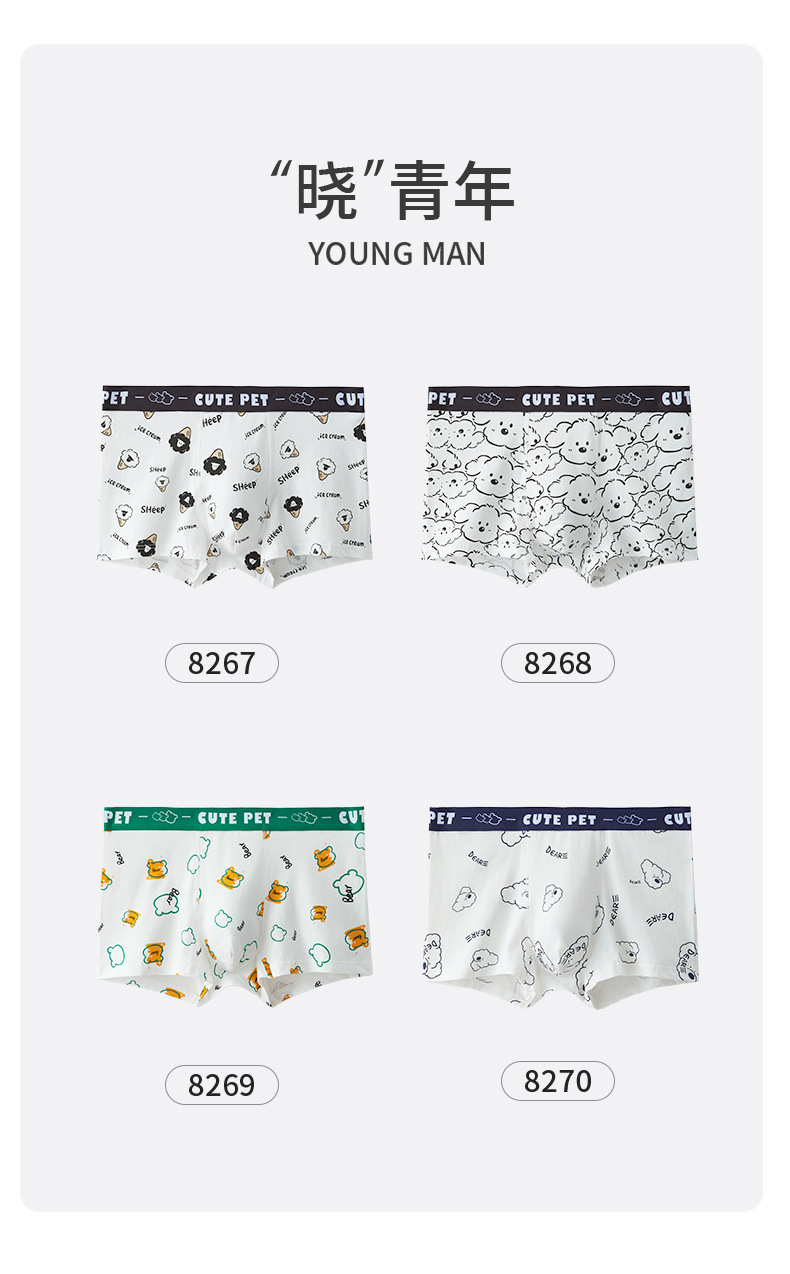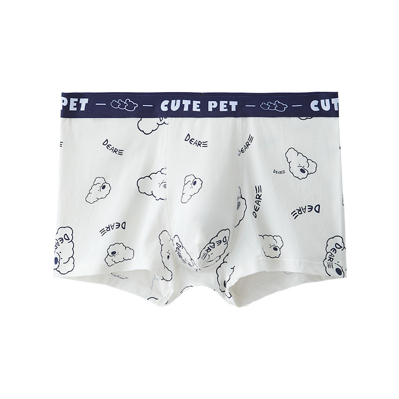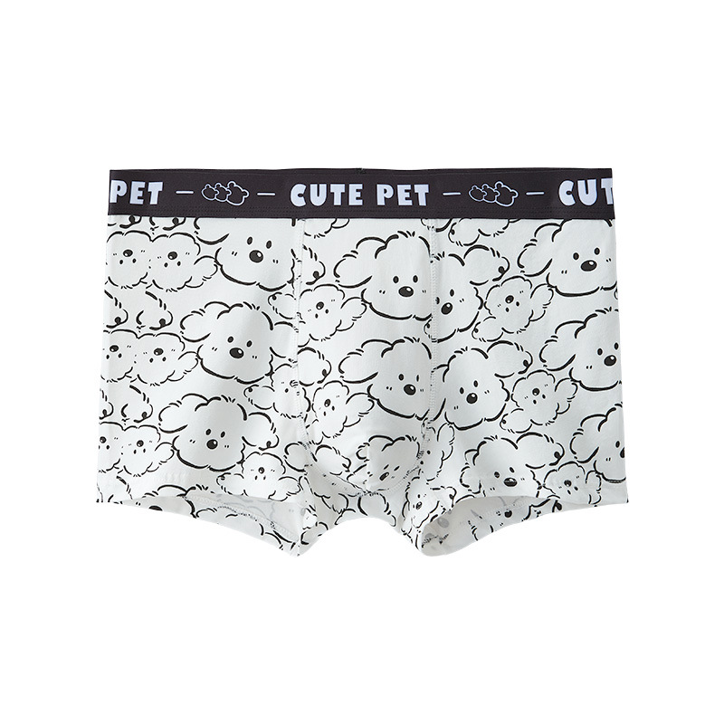 순수 코튼 남성 속옷 코튼 흑백 귀여운 만화 소년 복서 팬티 인쇄 만화 청소년 복서 반바지스토어 가기