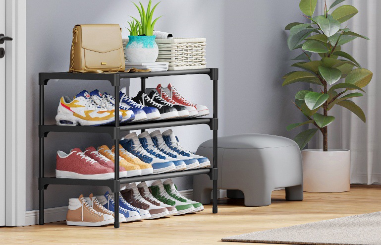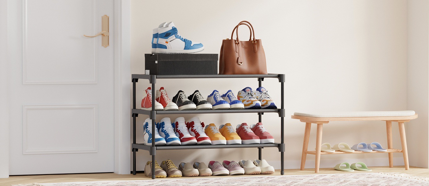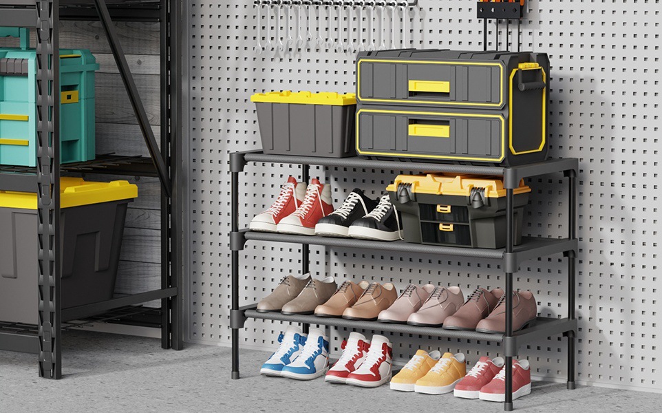부직포 신발 랙 옷장 입구 차고 신발 보관 랙 튼튼한 긴 스택 적합 가방 수하물