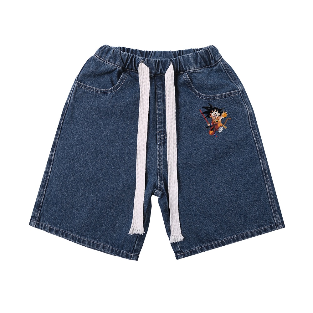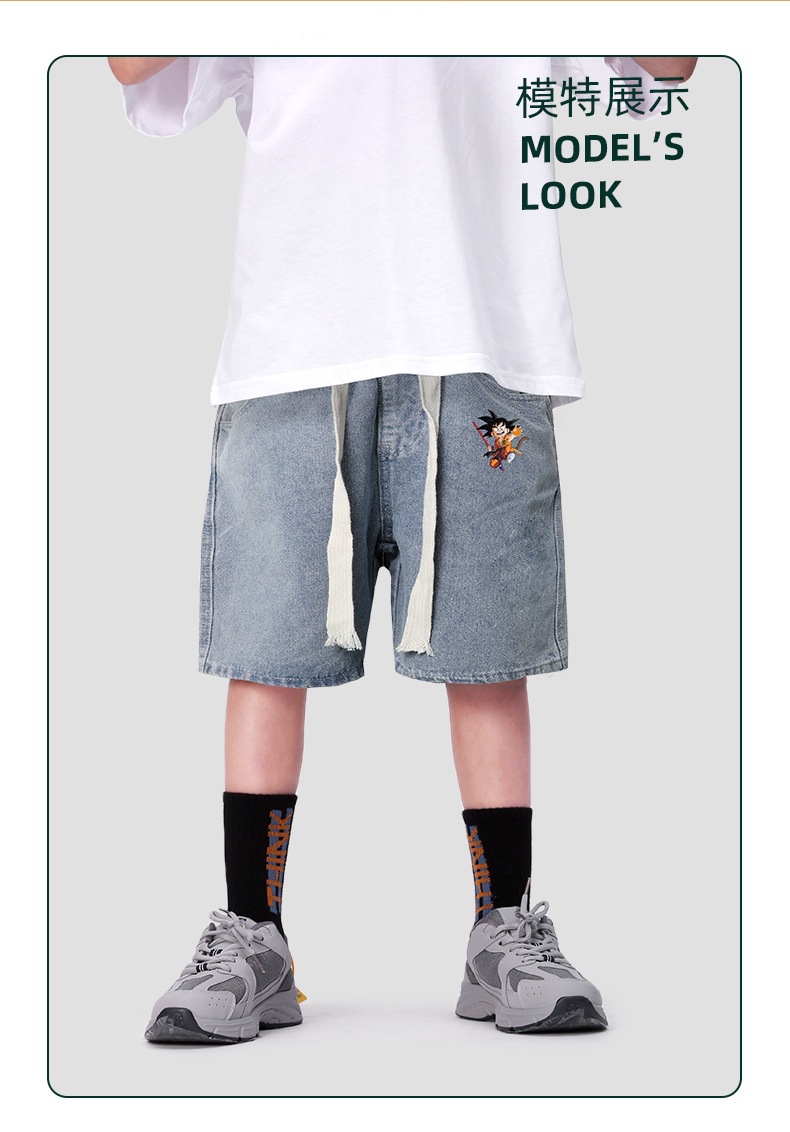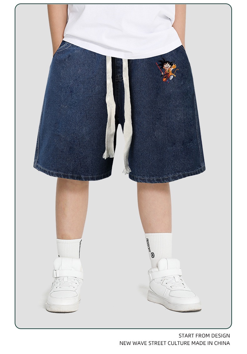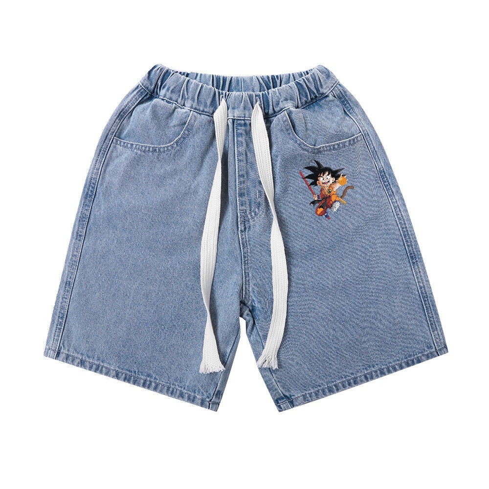 소년 청바지 애니메이션 Goku 프린트 5부 바지 2025 새로운 중대형 아동 여름 다용도 반바지 트렌드스토어 가기