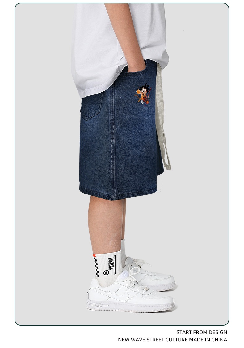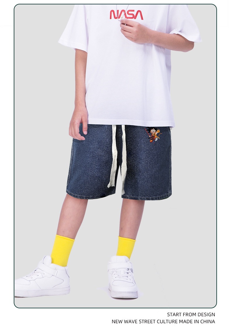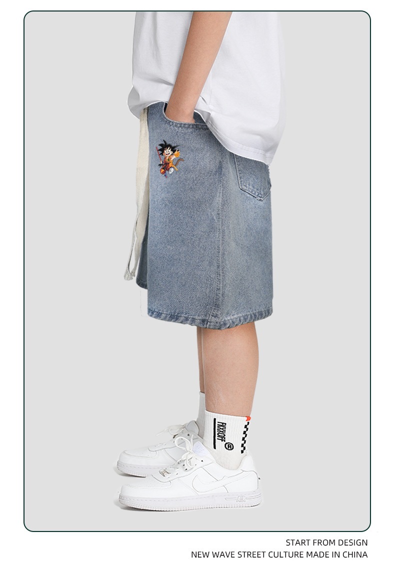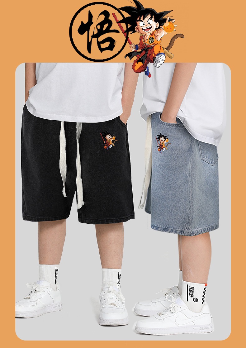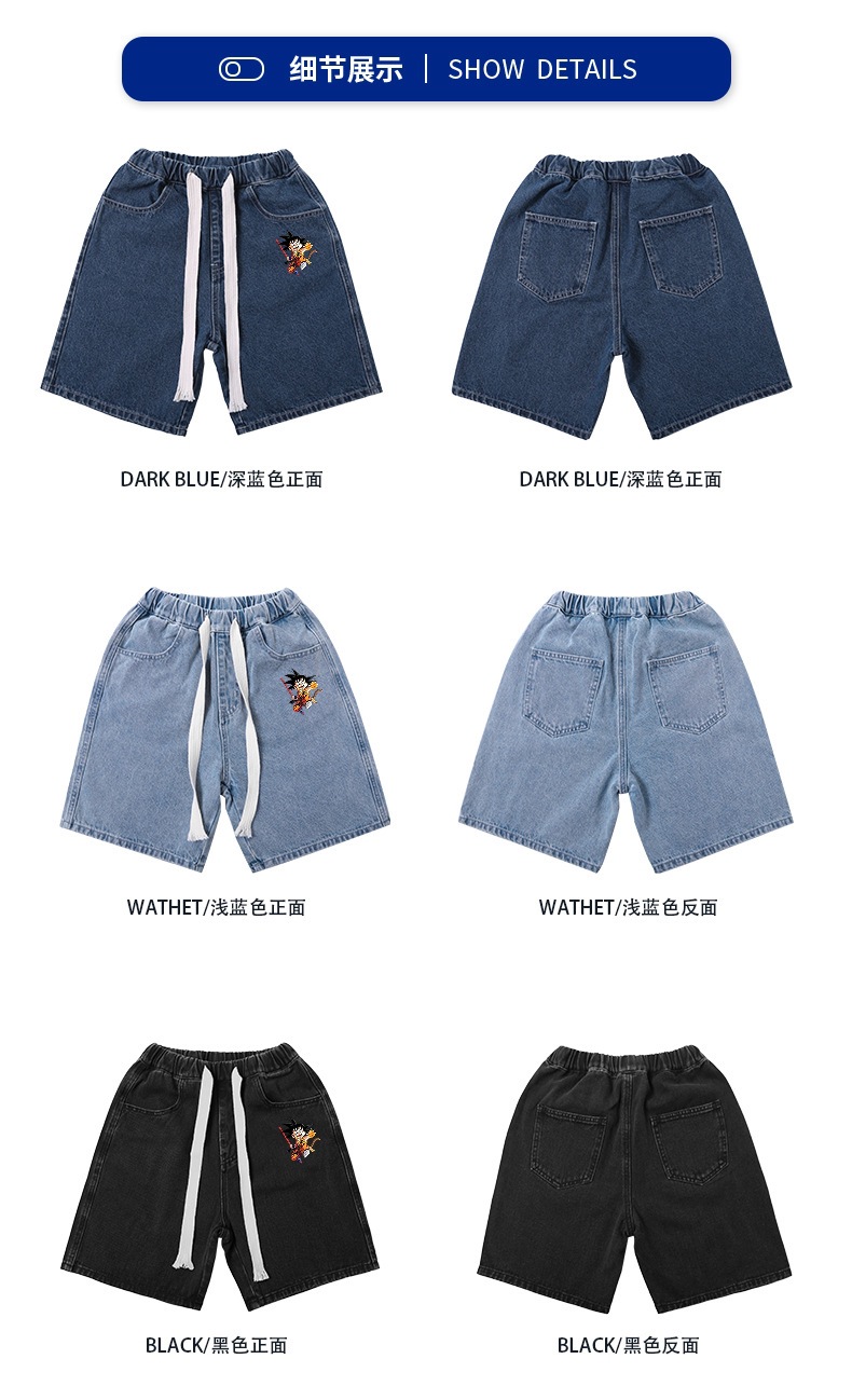 소년 청바지 애니메이션 Goku 프린트 5부 바지 2025 새로운 중대형 아동 여름 다용도 반바지 트렌드스토어 가기