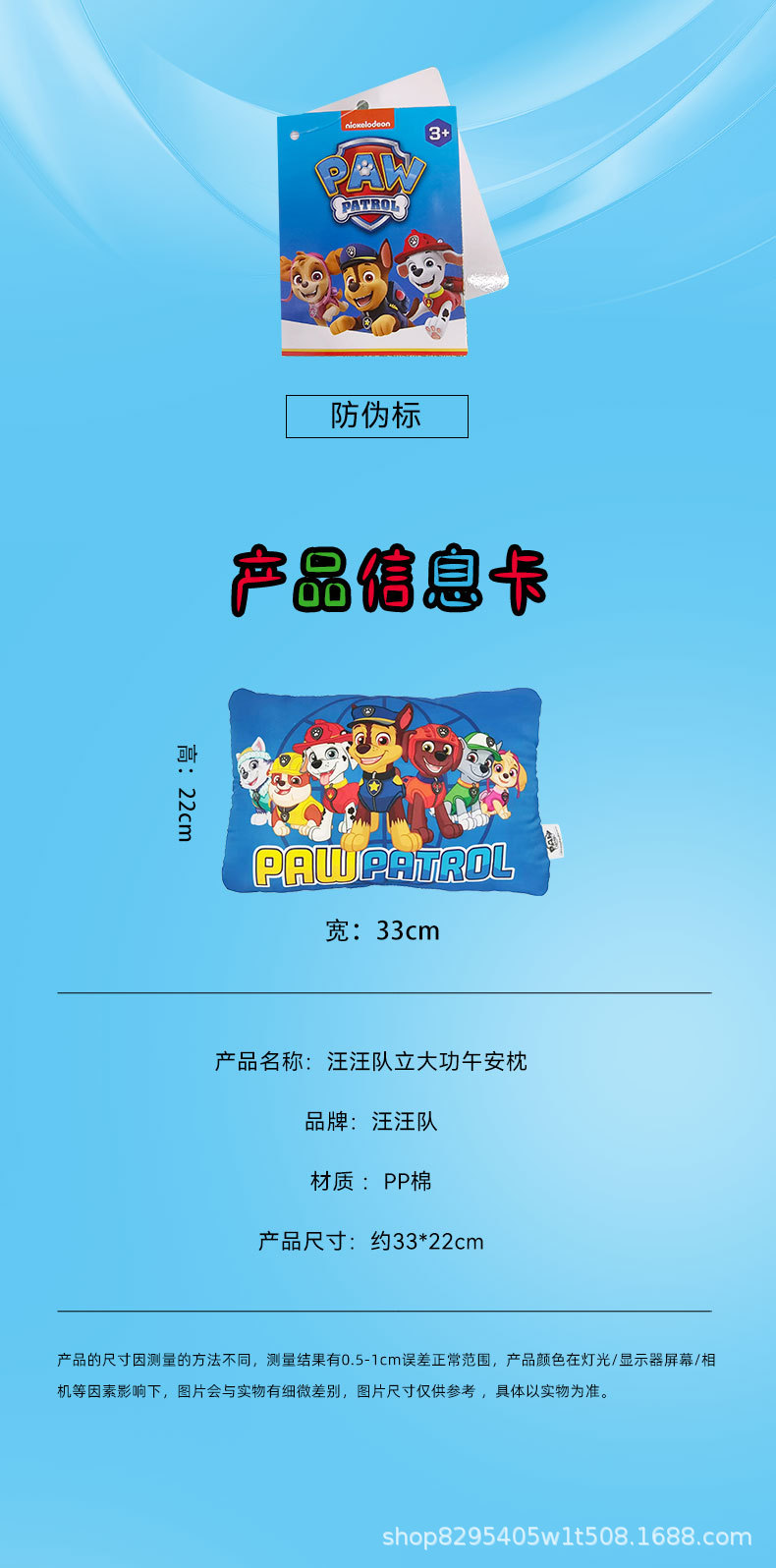 정품 Paw Patrol 어린이 베개 귀여운 만화 낮잠 베개 애니메이션 인쇄 작은 베개 홈 베개 수면스토어 가기