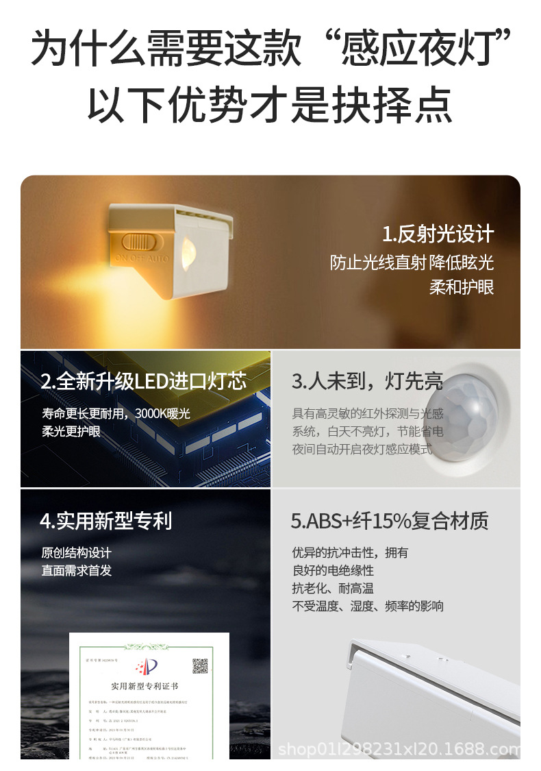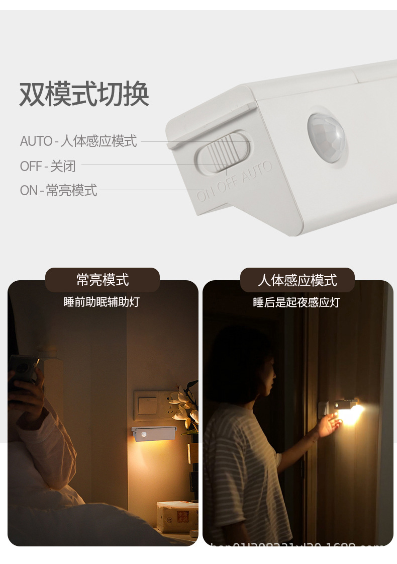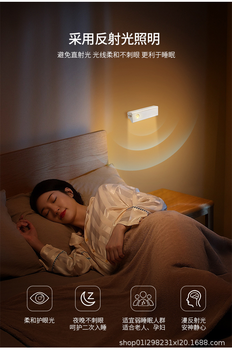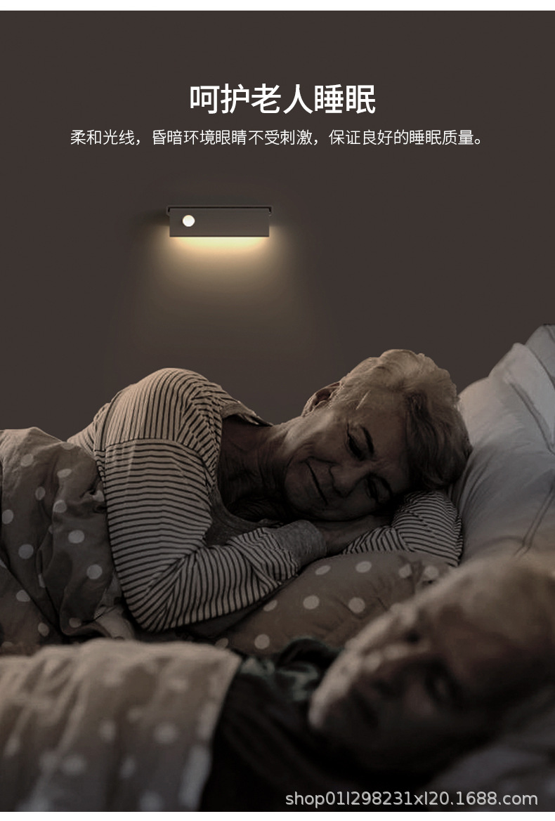 인체 유도 광 감지 무선 충전 눈부심 방지 침실 머리맡 통로 복도 화장실 홈 스마트 야간 조명스토어 가기